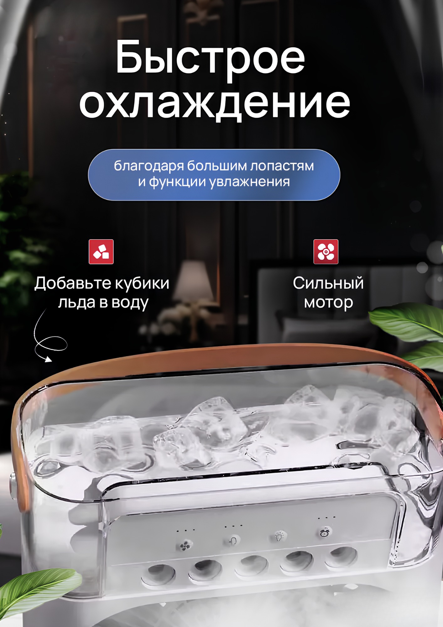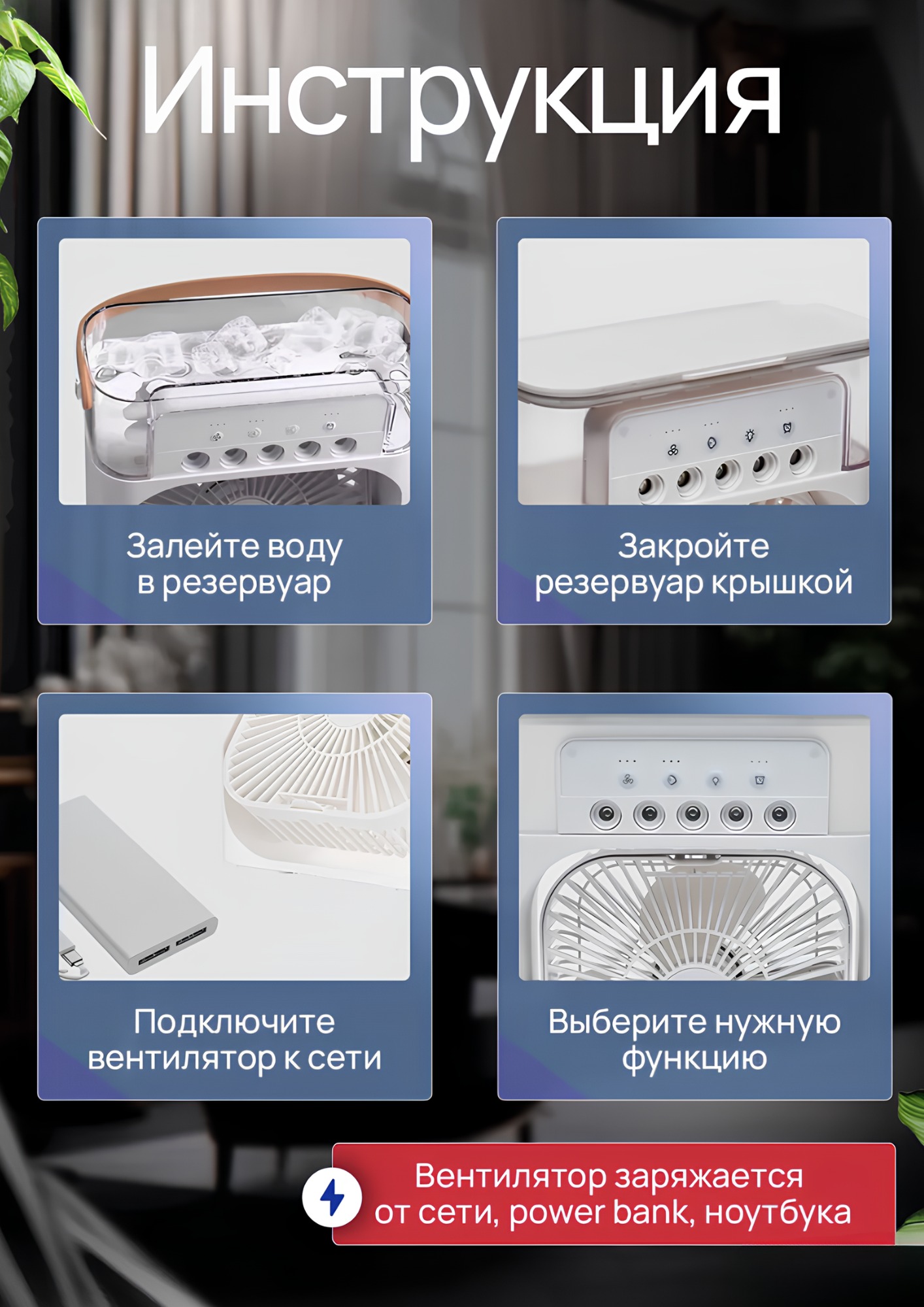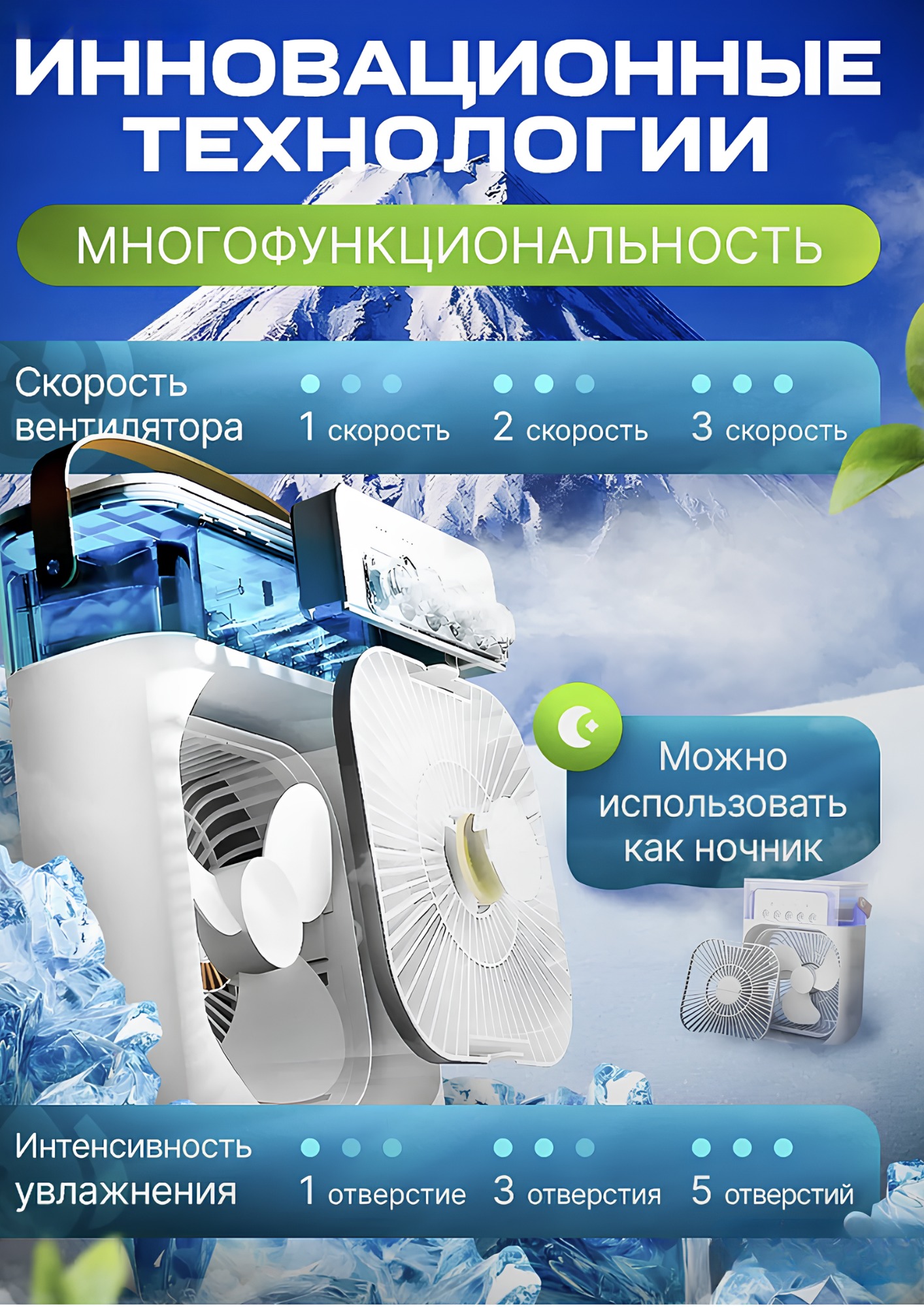 Портативный мини кондиционер 3в1: вентилятор, увлажнитель и охладитель воздуха с LED-подсветкой