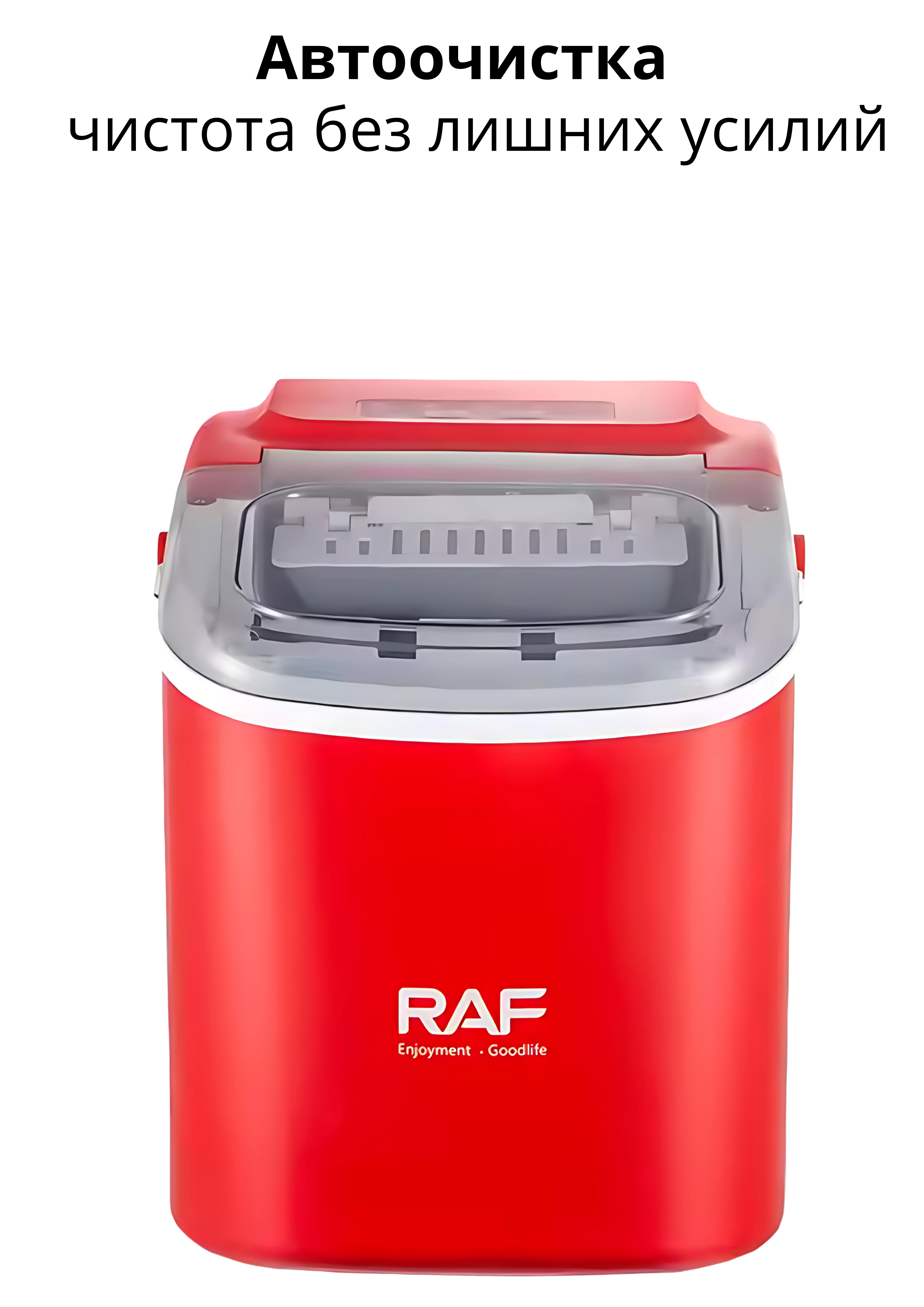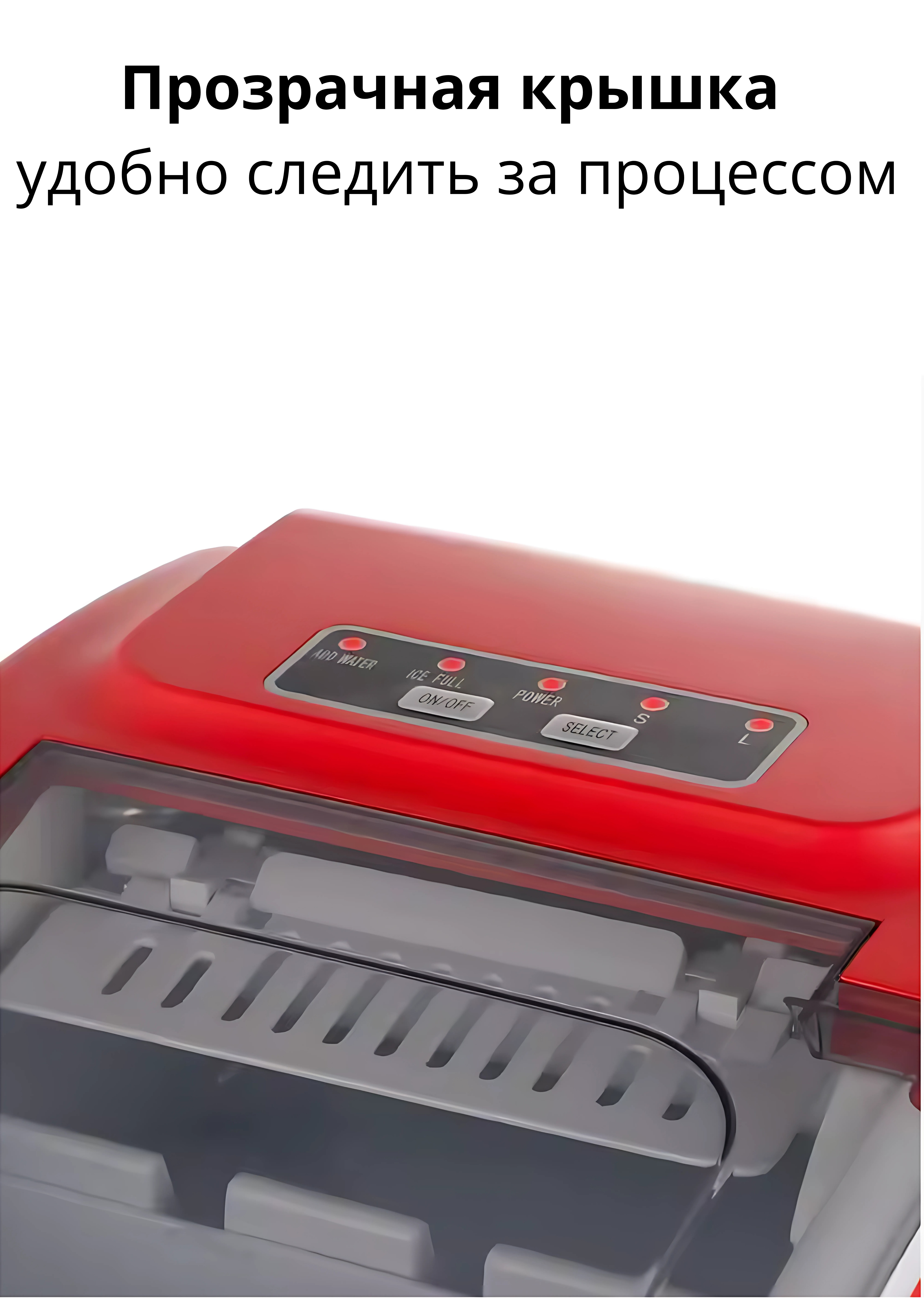 Ледогенератор с функцией автоочистки, контейнером на 600 г и резервуаром на 1,2 л (красный цвет)