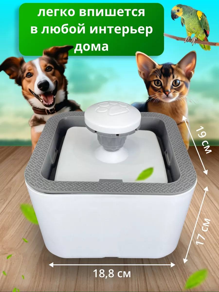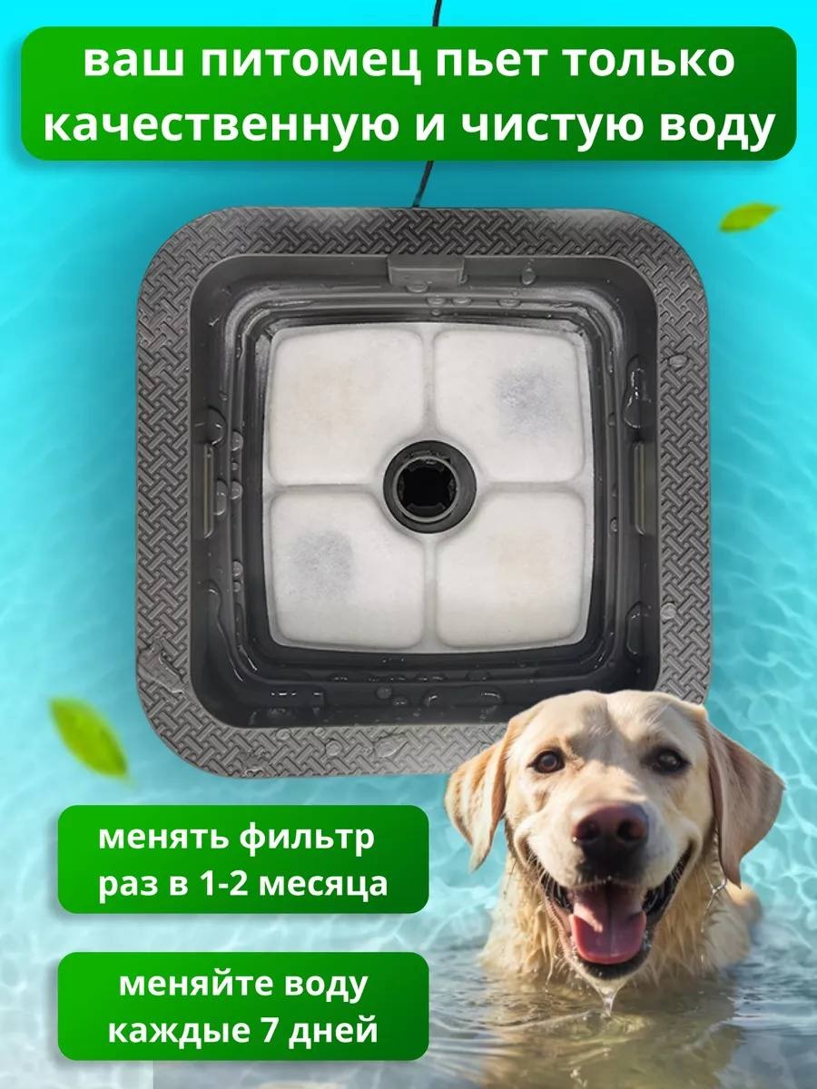 Улучшенная система фильтрации: Наш питьевой фонтанчик для кошек и собак оснащен улучшенной системой фильтрации, которая эффективно очищает воду от загрязнений, включая волосы, пыль и остатки пищи. Это гарантирует, что ваш питомец будет пить только чистую и пресную воду.