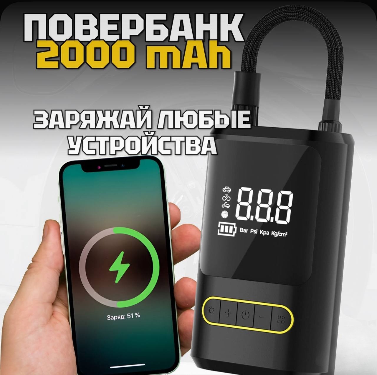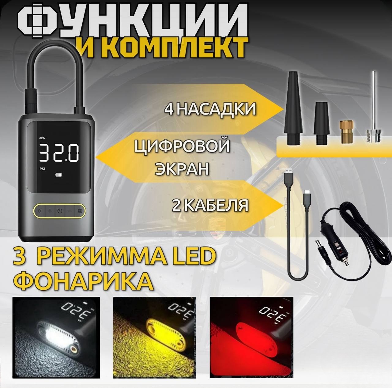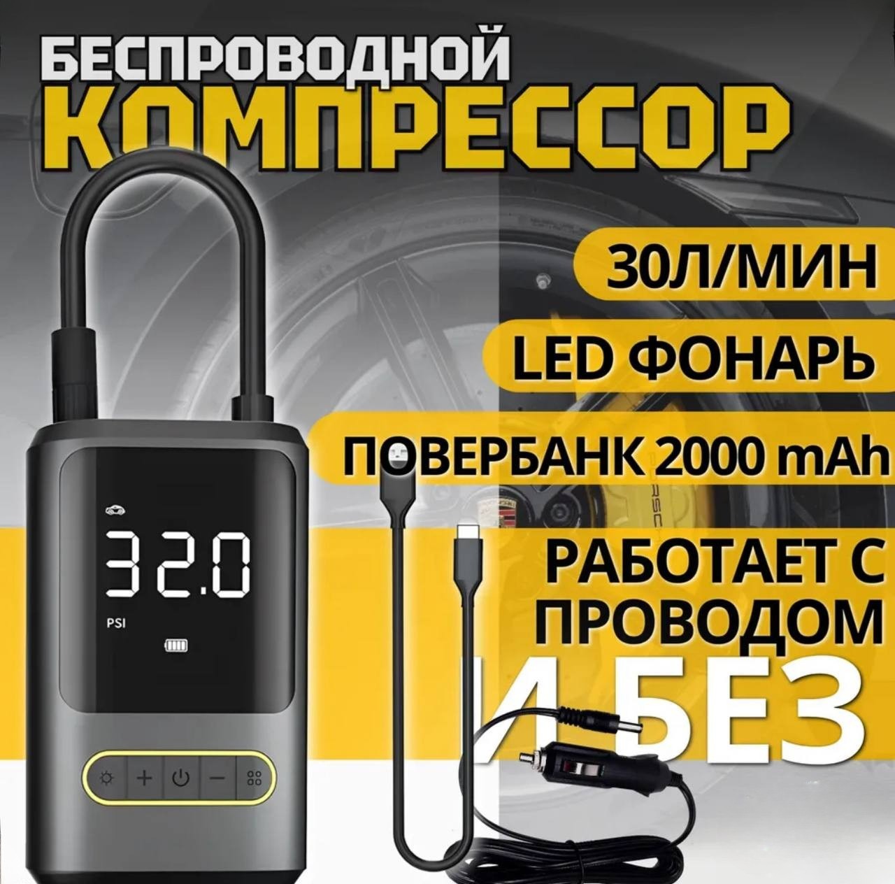 Портативный автомобильный электрический насос для шин - беспроводной компрессор с ручной зарядкой USB