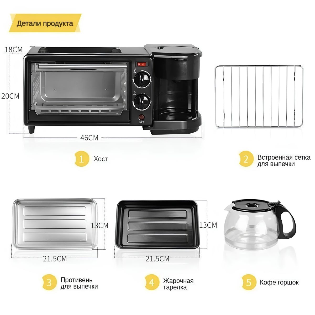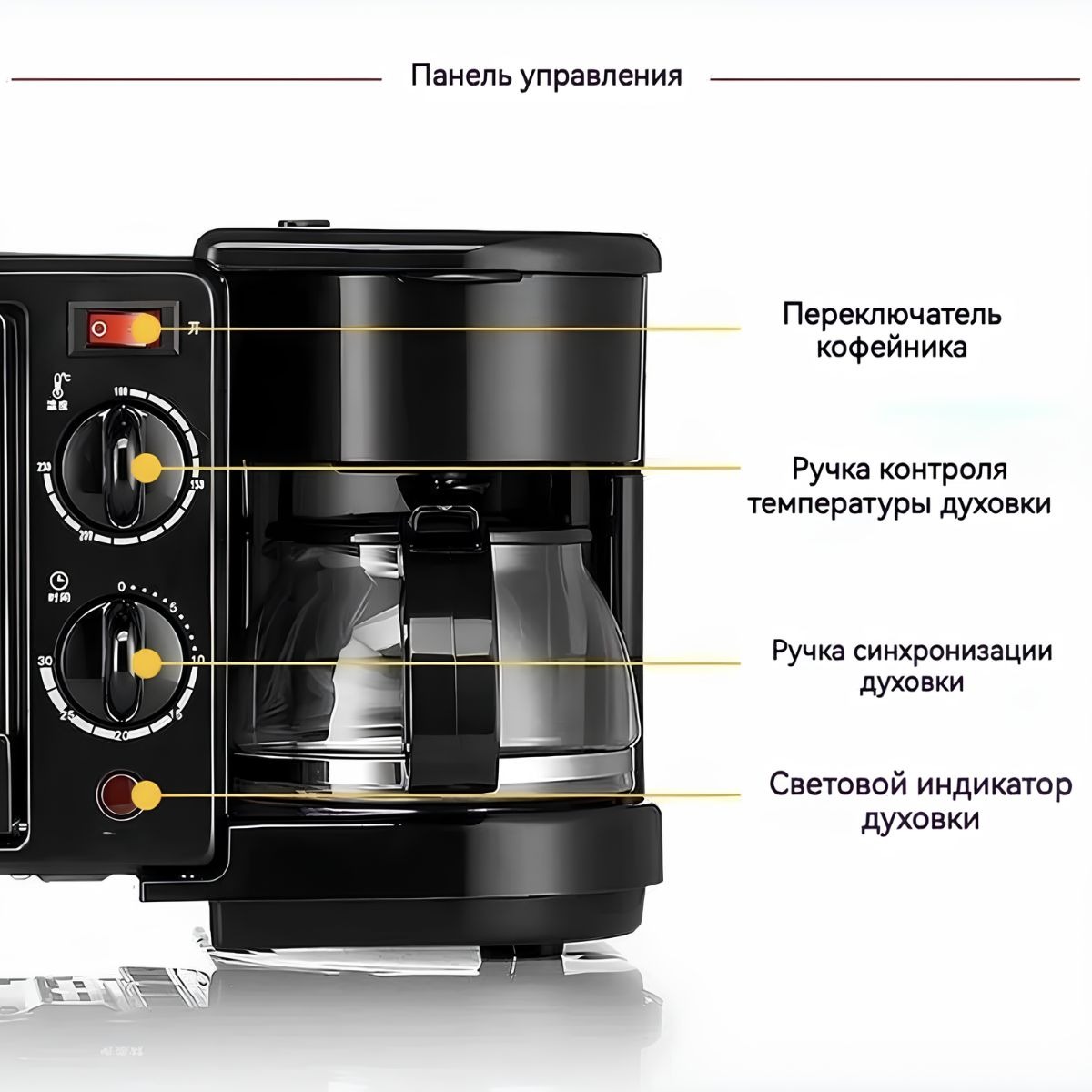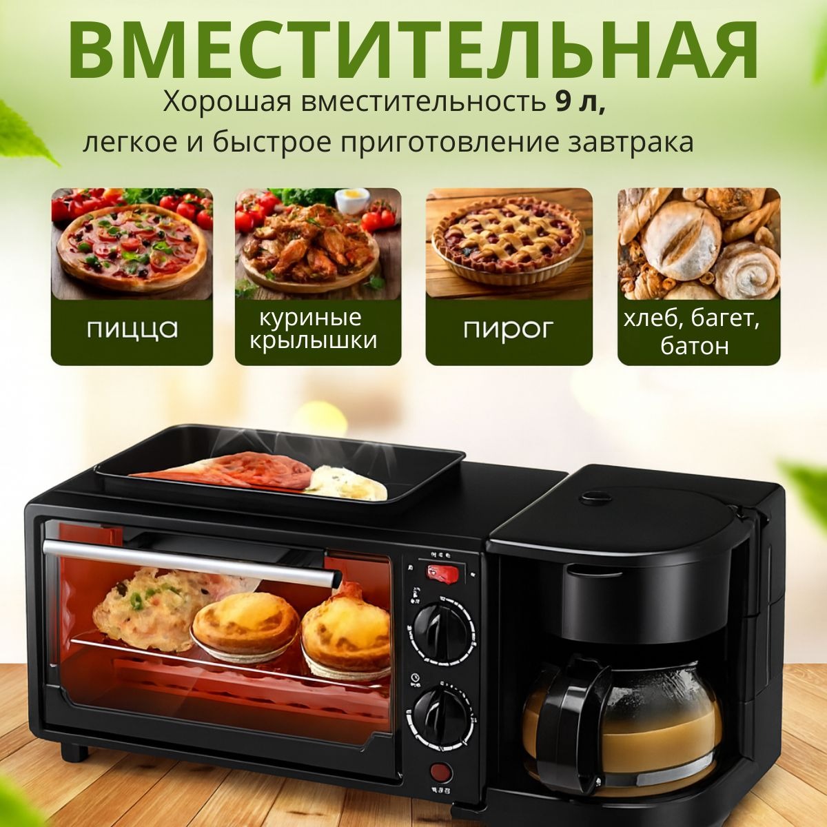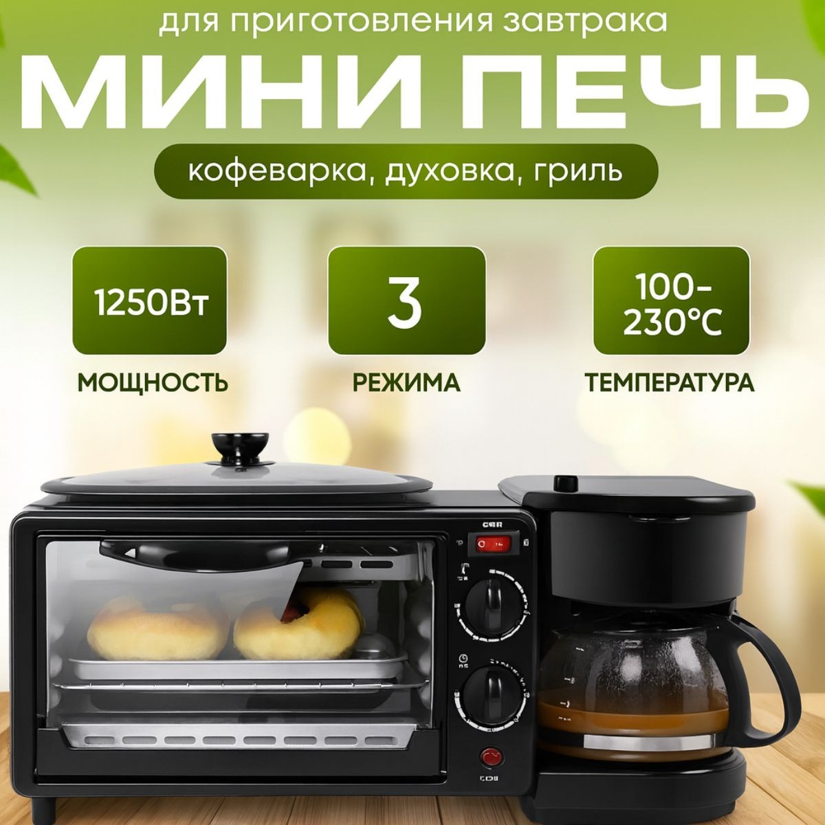Электрическая духовка 3 в 1 с кофеваркой и сковородой