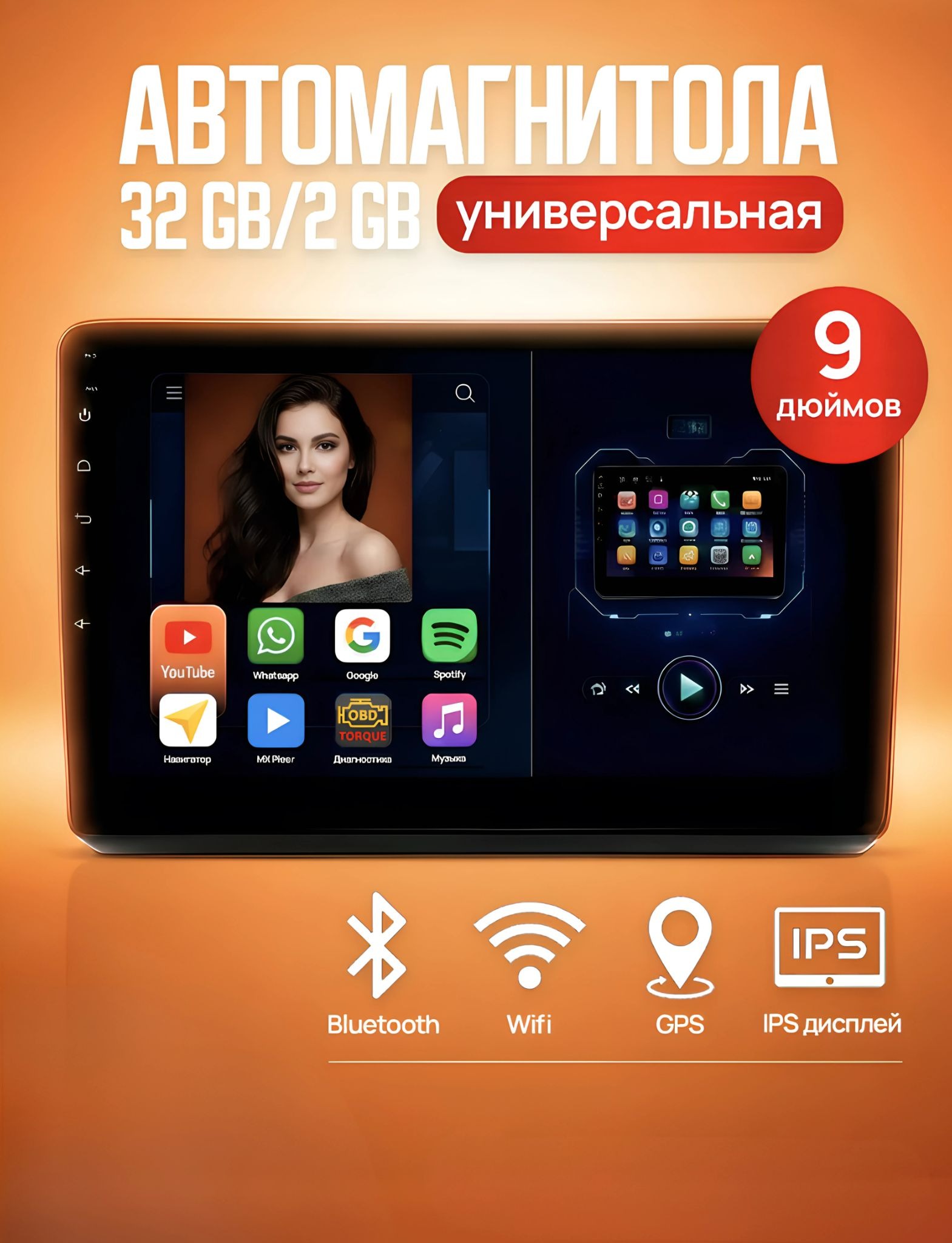 Автомобильная магнитола Android 9 дюймов 2/32 ГБ сенсорный экран GPS Wi-Fi Bluetooth