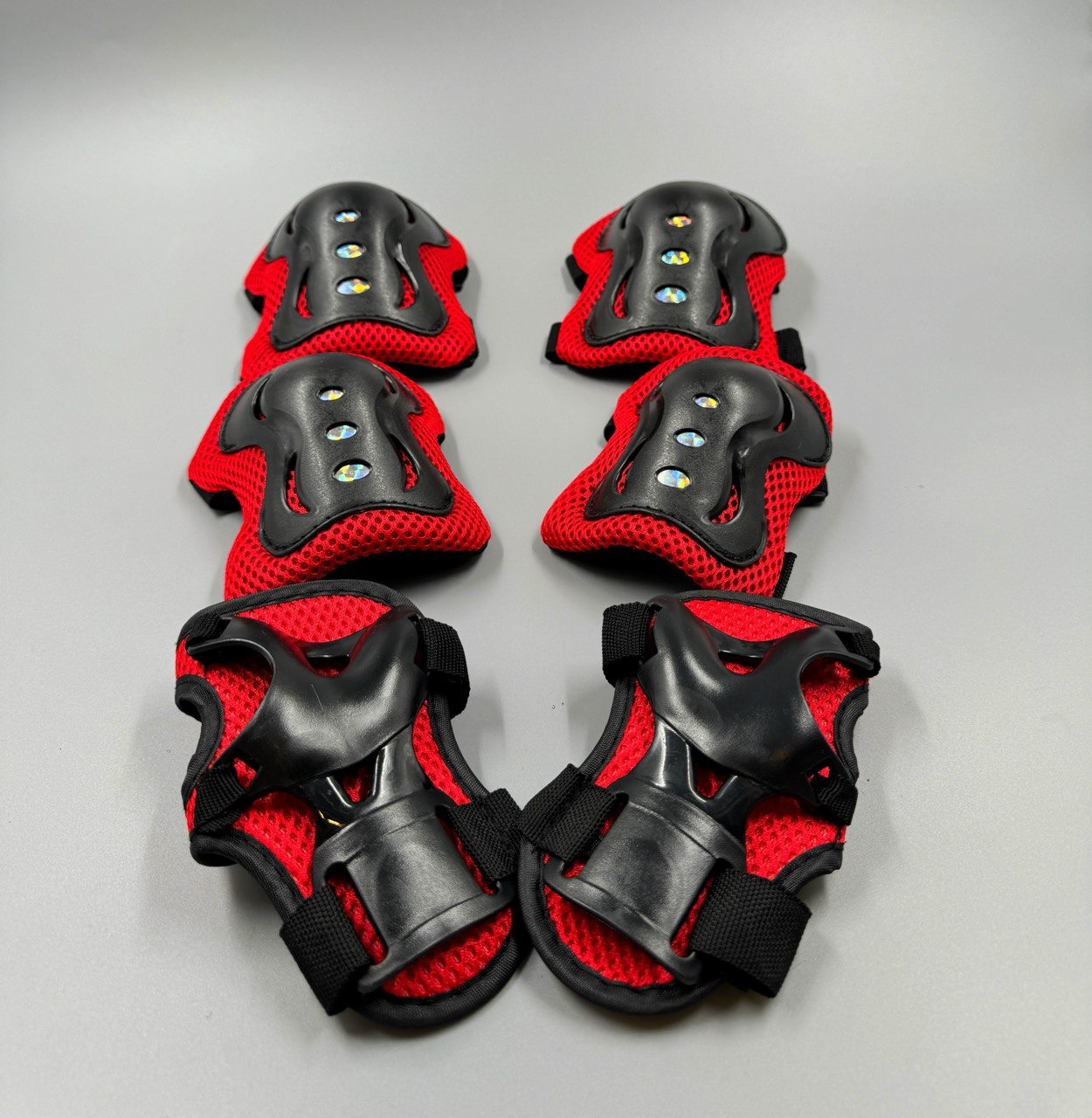 Фирменный комплект защиты красный , шлем, наколенники, налокотники, перчатки