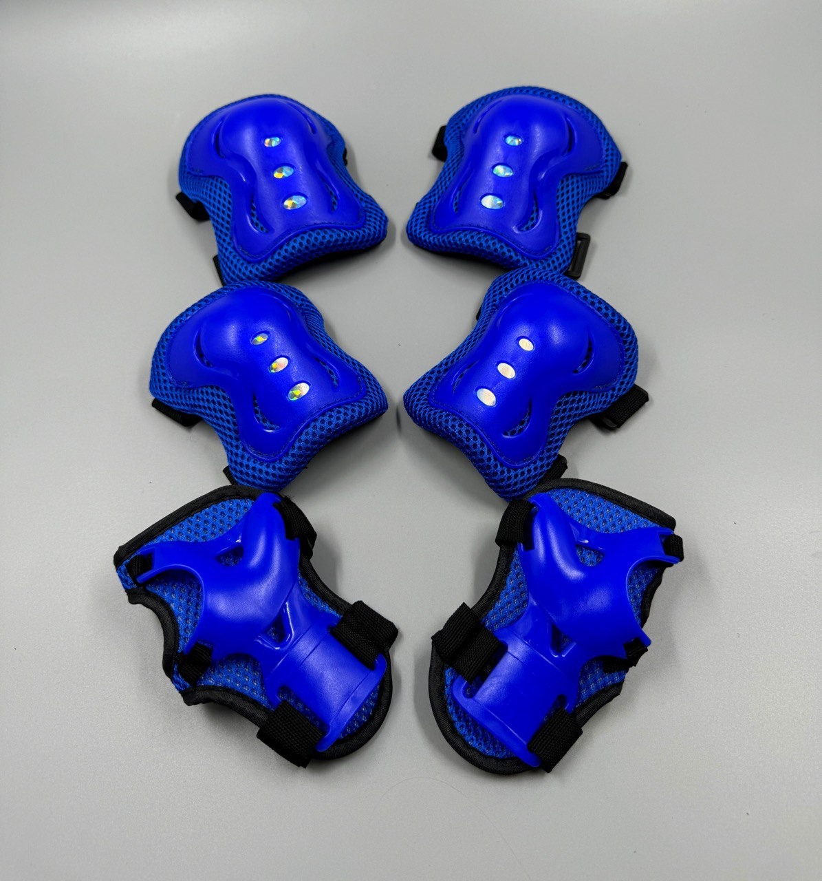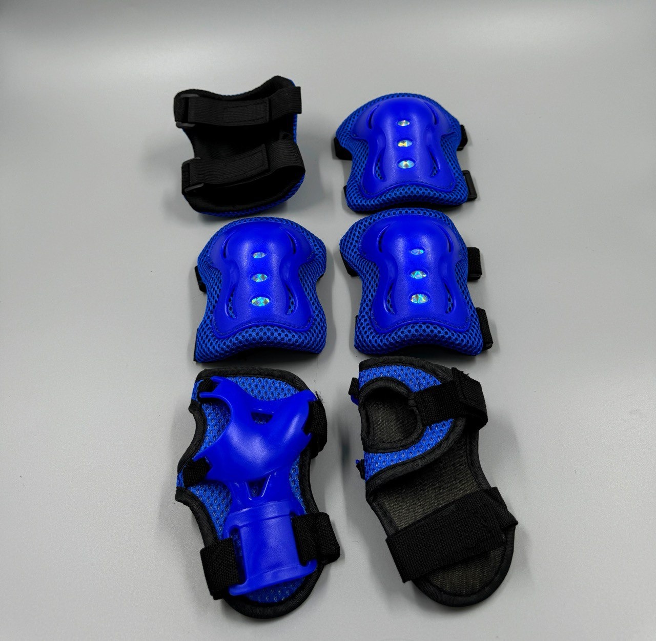 Возраст: 3–13 лет (универсальный размер благодаря регулировке)Комплект защиты (наколенники, налокотники, ладонные протекторы)