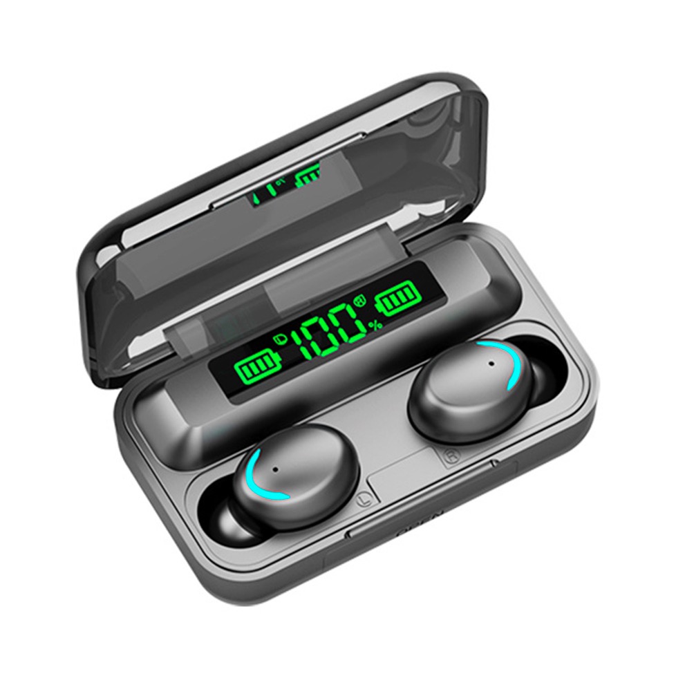 Сенсорные блютуз наушники с цифровым боксом индикатора заряда.