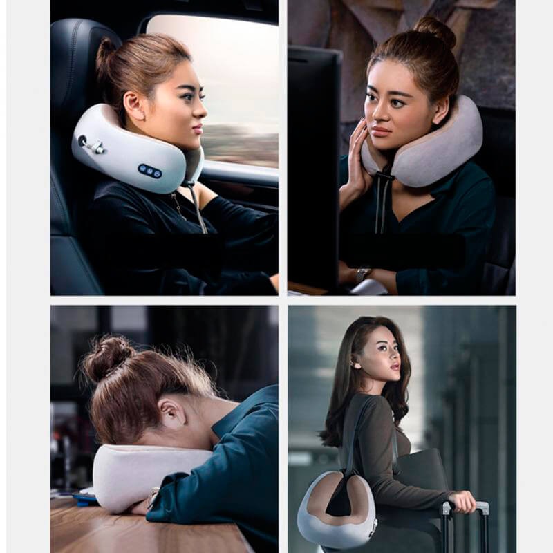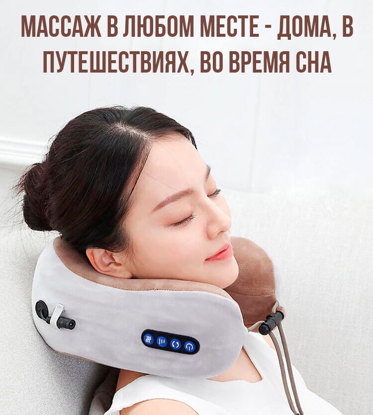 Массажная подушка для шеи дает возможность делать массаж, находясь где угодно. Для продолжительных путешествий лучшего не придумаешь.