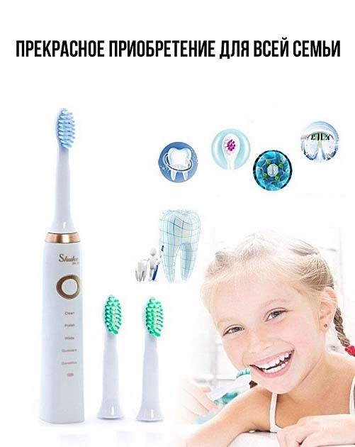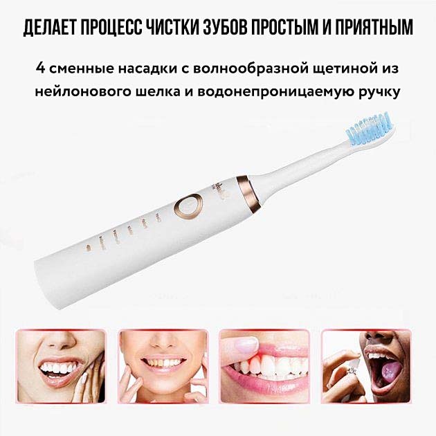 Электрическая зубная щетка белая c 4 насадками, 5 режимов роботы