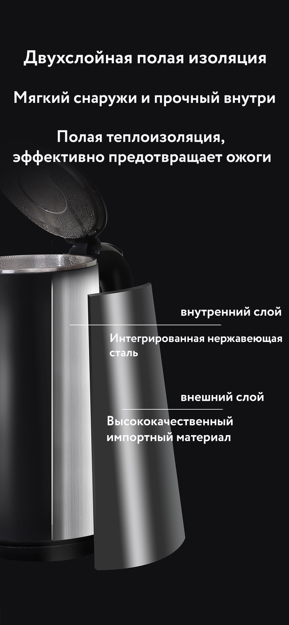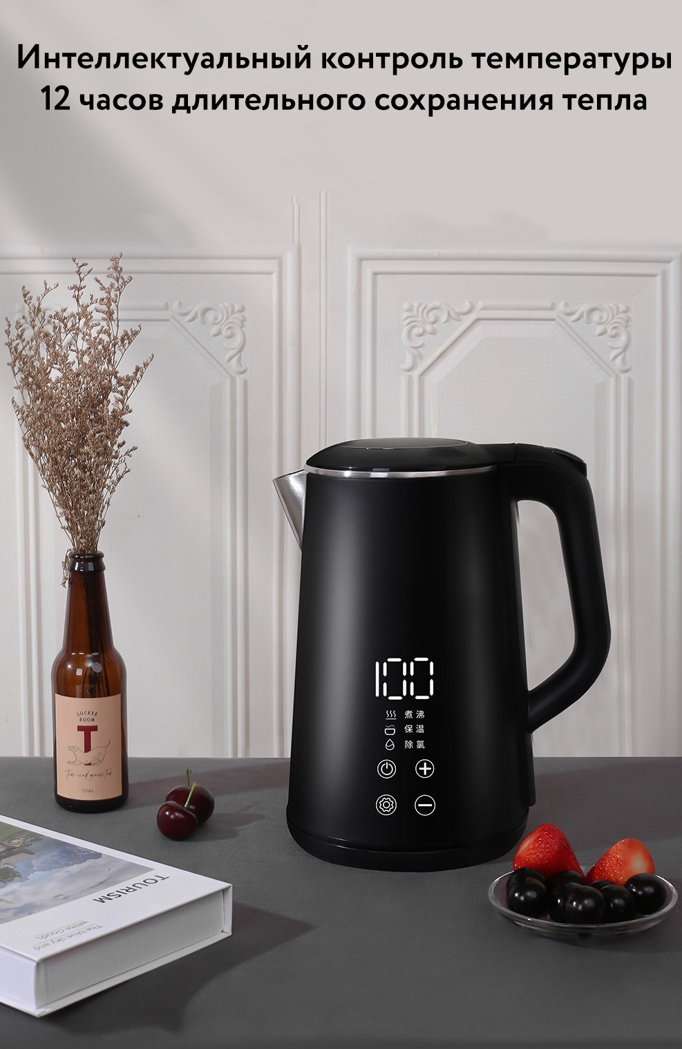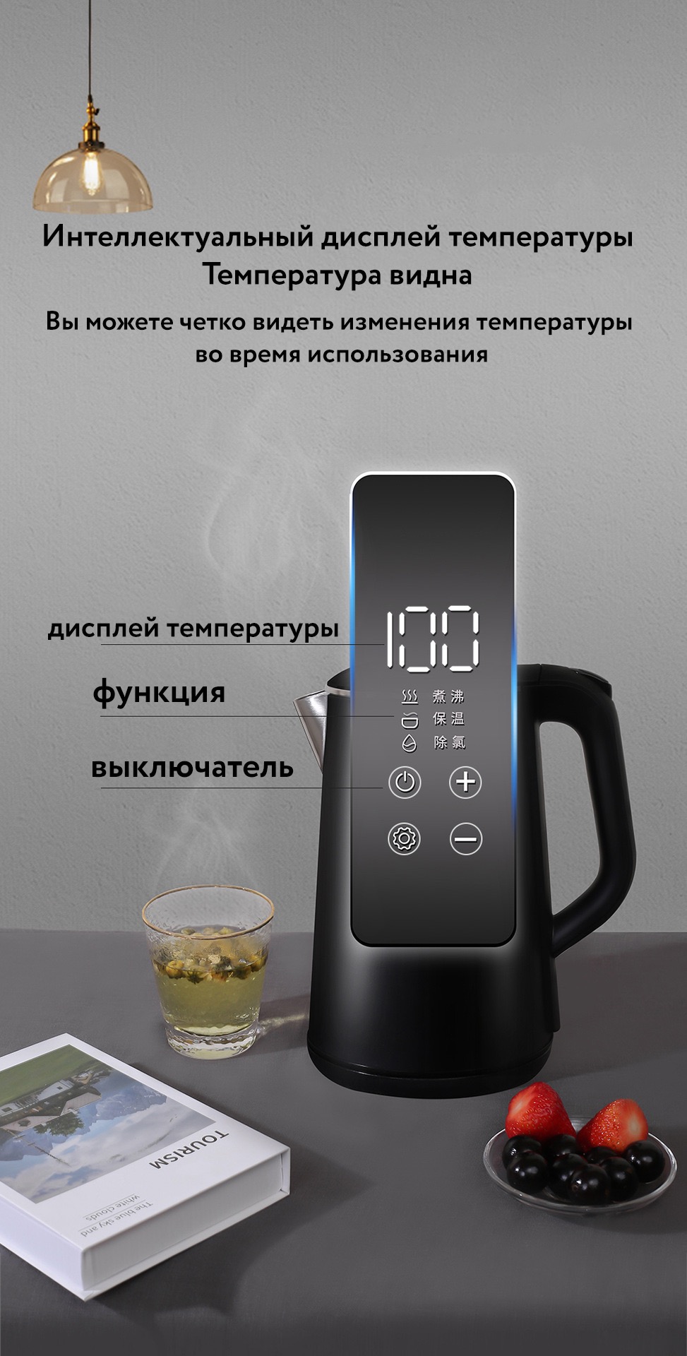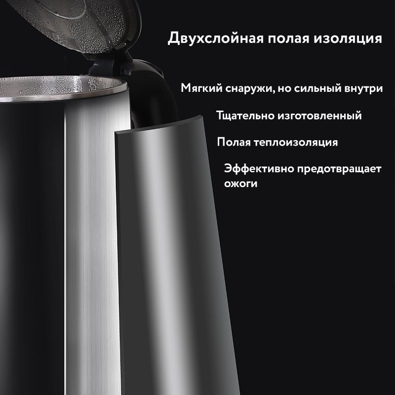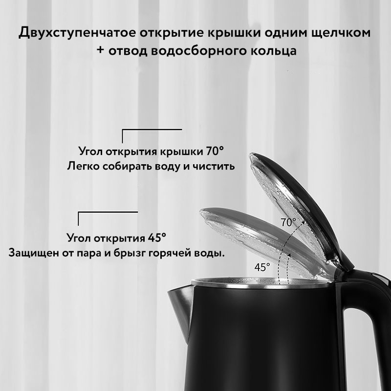 Предусмотрена уникальная функция поддержания выбранной температуры в течение 30 минут. Скрытый нагревательный элемент гарантирует безопасность и длительный срок эксплуатации устройства. С прозрачной шкалой наполнения легко контролировать количество воды, экономить время и электроэнергию. Беспроводная база вращается на 360° и имеет устойчивые ножки, предотвращающие скольжение.