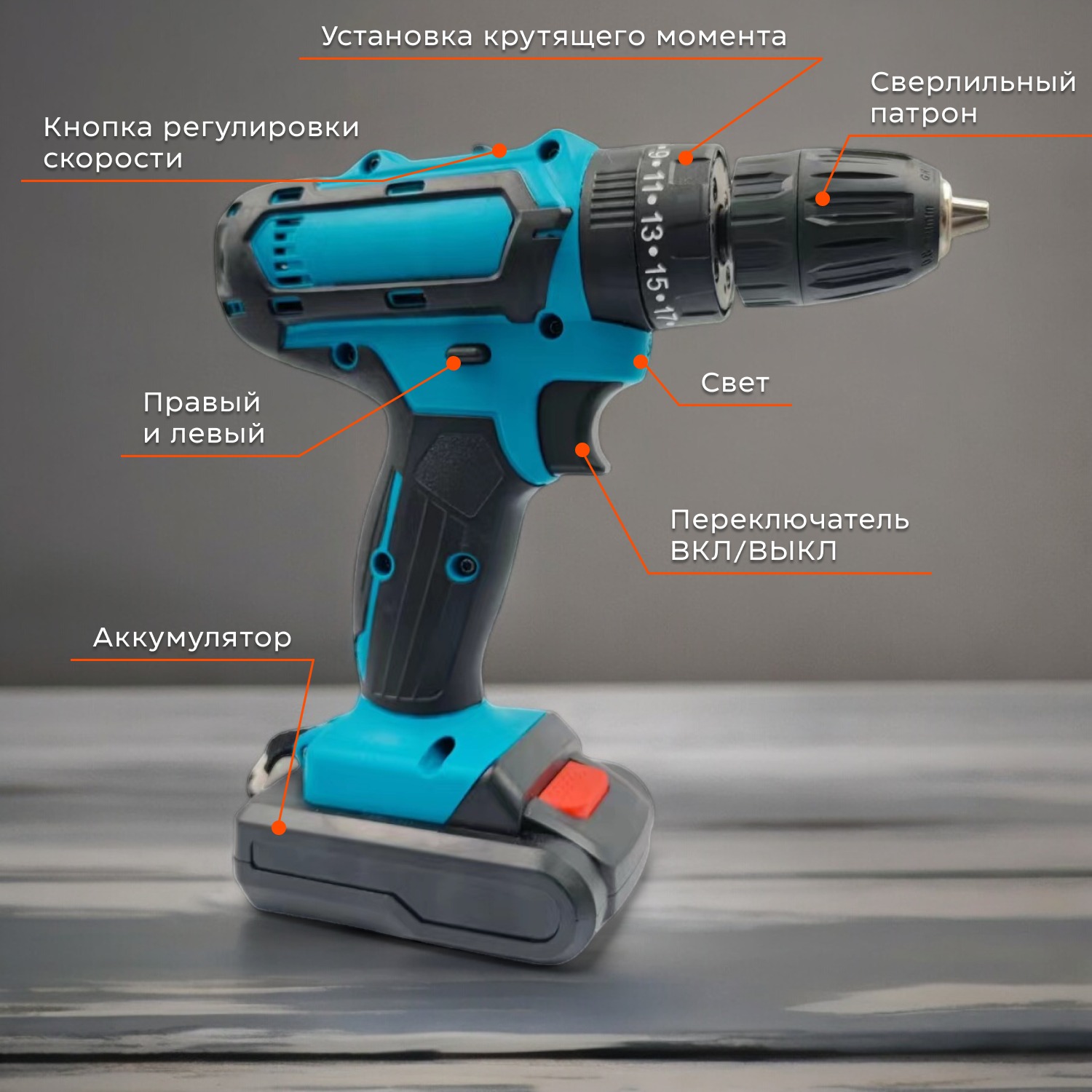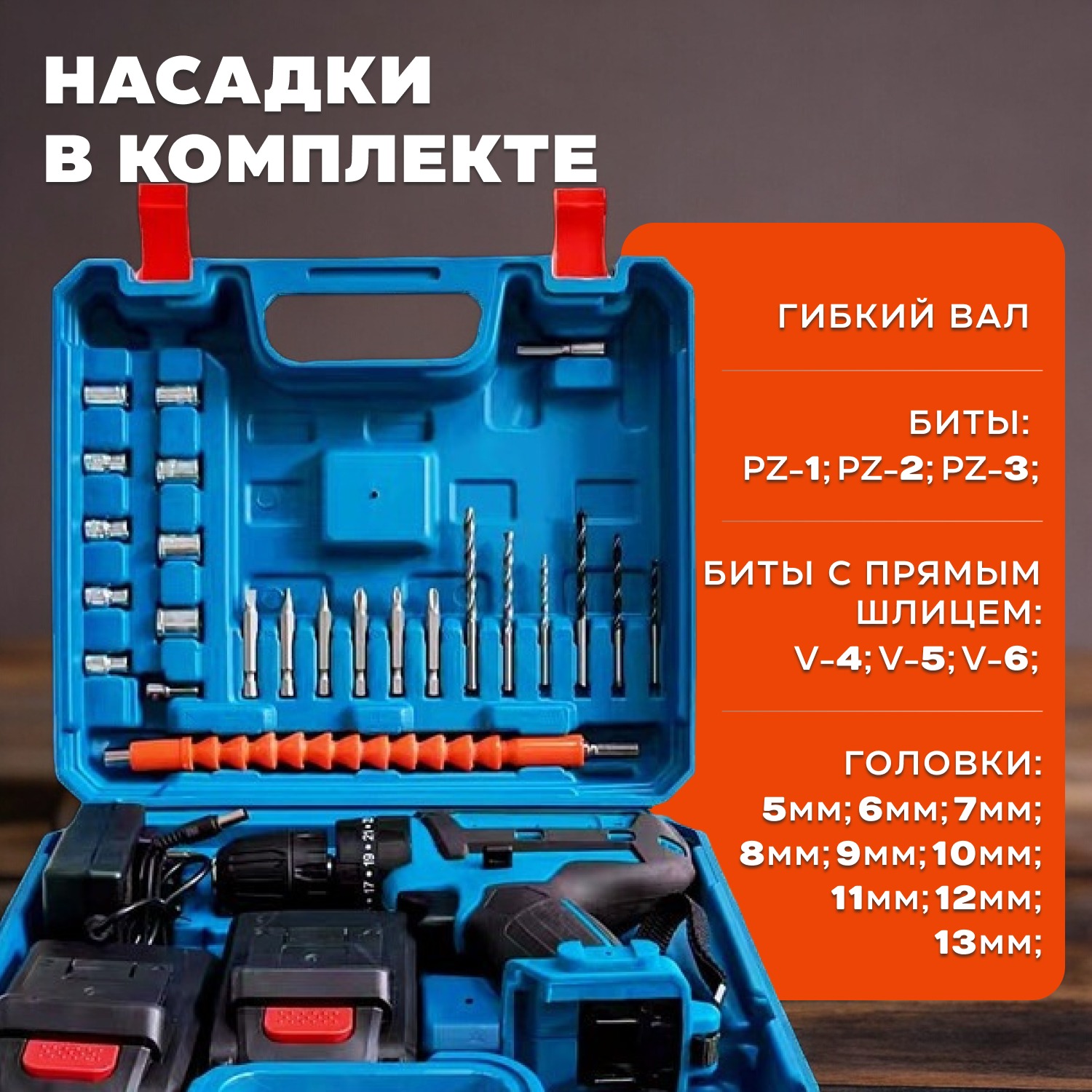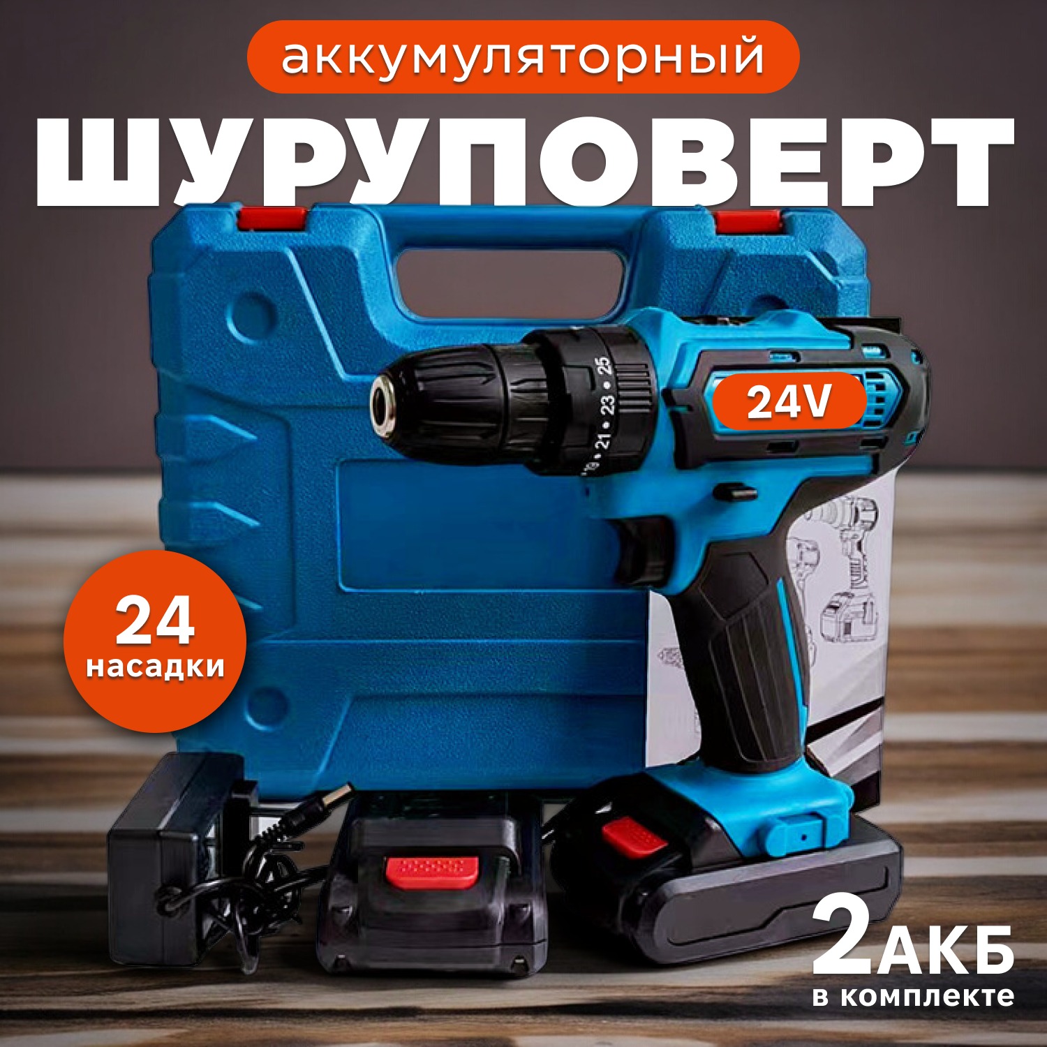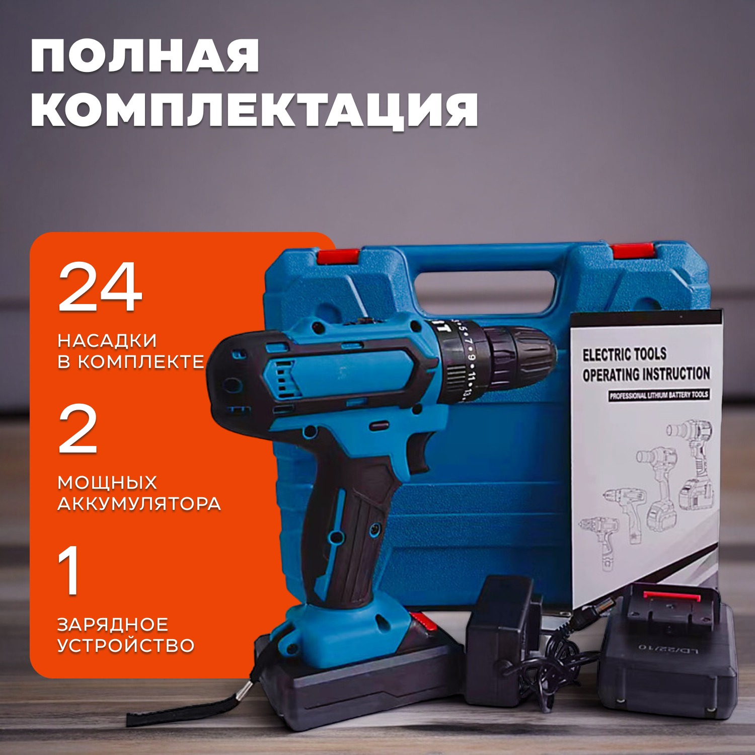 Аккумуляторный шуруповерт. Набор слесарного инструмента в чемодане 24v