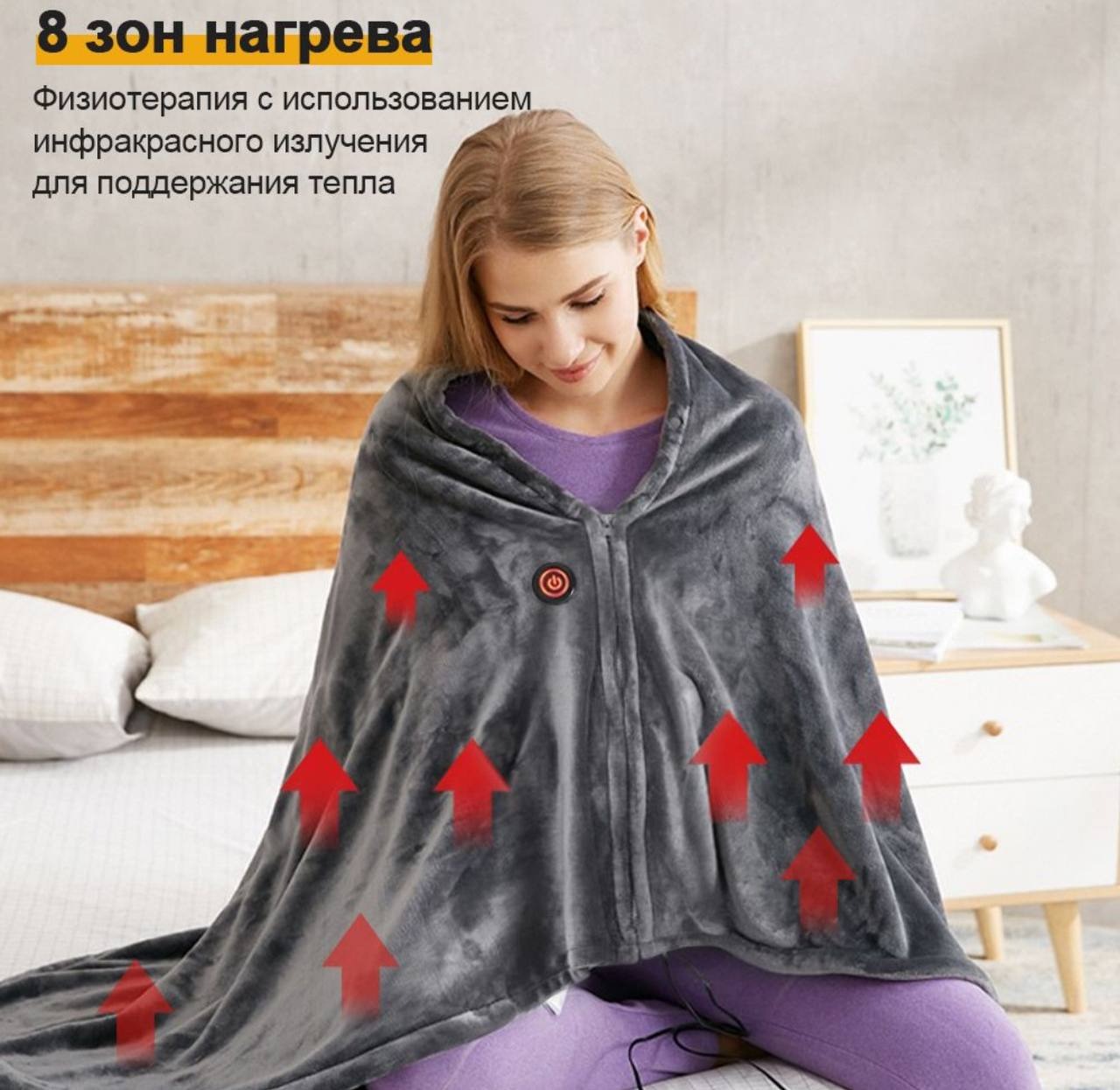 - 8 зон нагрева: Одеяло оснащено восемью отдельными нагревательными элементами, которые обеспечивают равномерное распределение тепла по всему изделию.