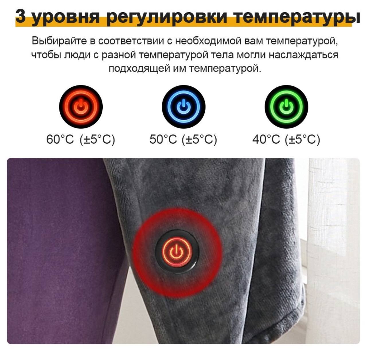 Размер 160*80 см Цвет Серый Ткань Дхвусторонний коралловый бархат Грелки 8 шт Передача Три регулируемые передачи Диапазон темпереатур 40-60°C ![]()