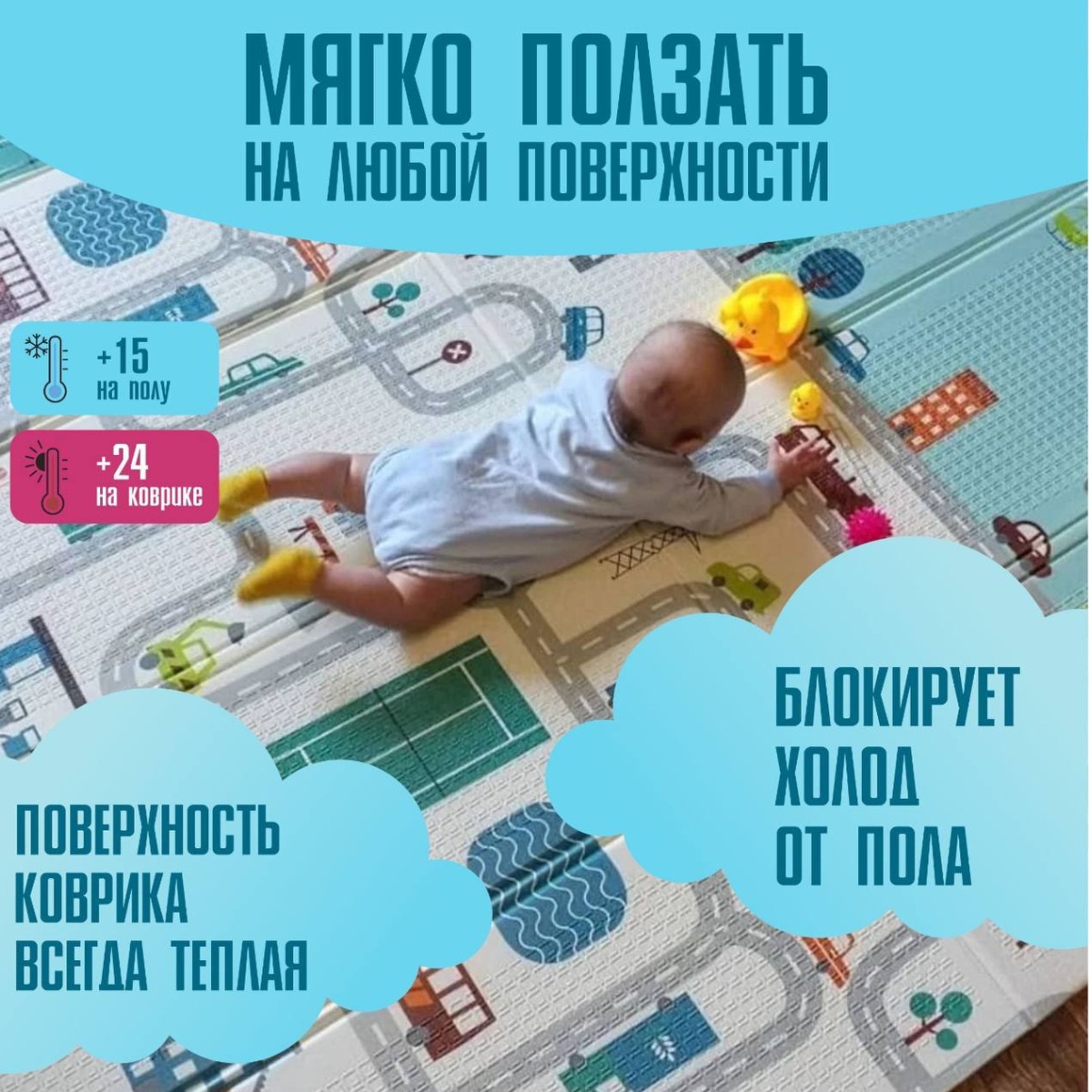 Качественный детский складной двусторонний термоковрик размером 150x180 см – это безопасная и стильная зона для игр и развития. Подходит для детей от рождения до 7 лет, начиная с ползания до активных игр.