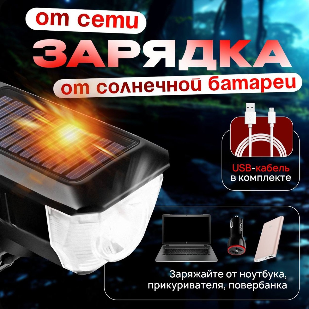 Зарядка от солнца или USB - благодаря встроенной солнечной панели велофонаря можно экономично и удобно во время поездок днем заряжать фонарь