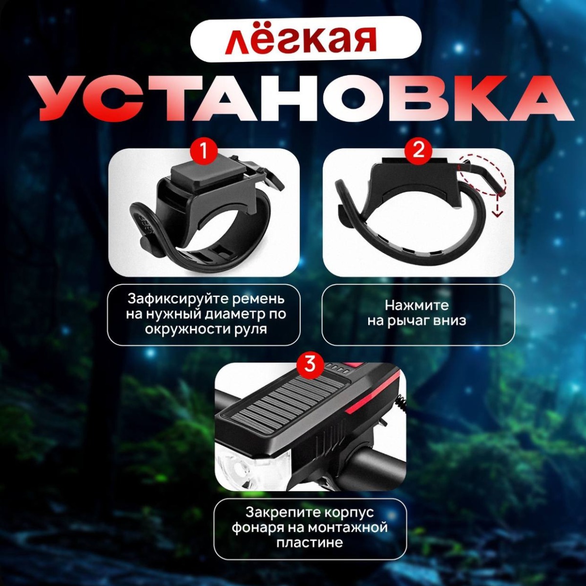 Универсальный велосипедный фонарь LY17 на солнечной батарее с мощным диодом Т6 и сигналом.