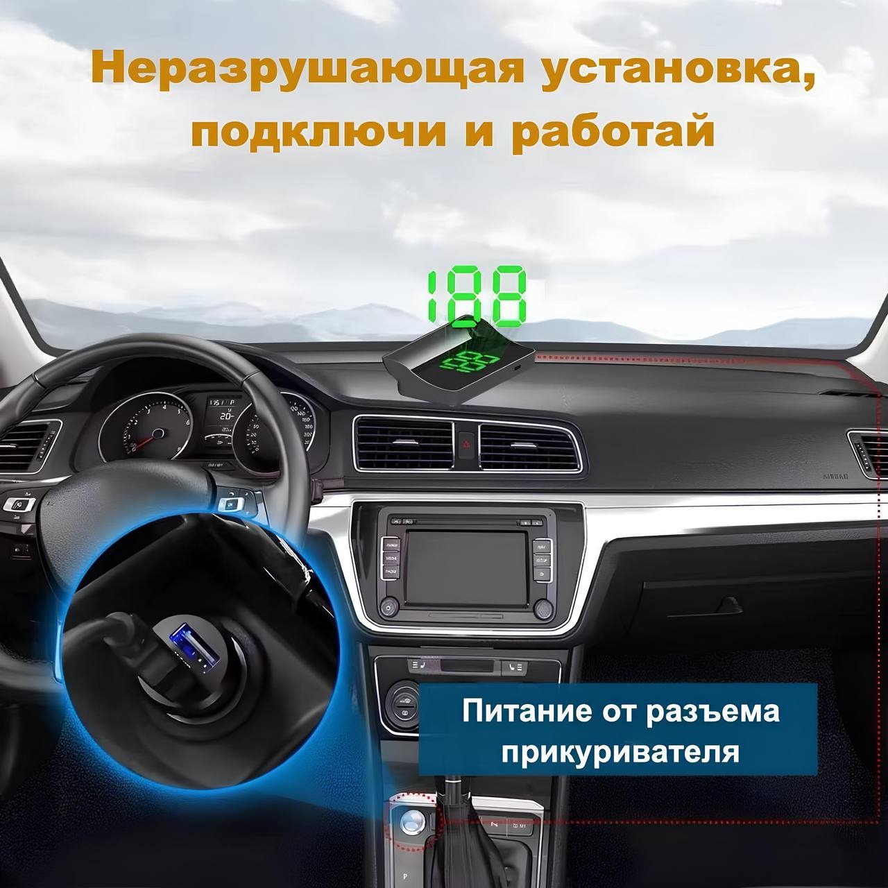 Этот компактный проектор отображает скорость км/ч непосредственно на лобовом стекле, обеспечивая точные показания благодаря GPS, без задержек и влияния на аккумулятор автомобиля.