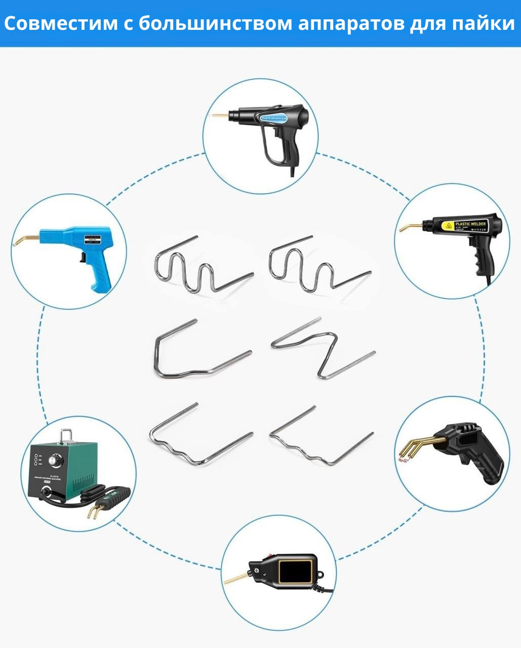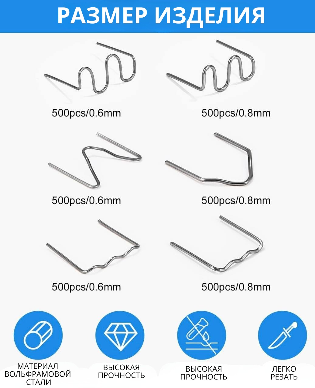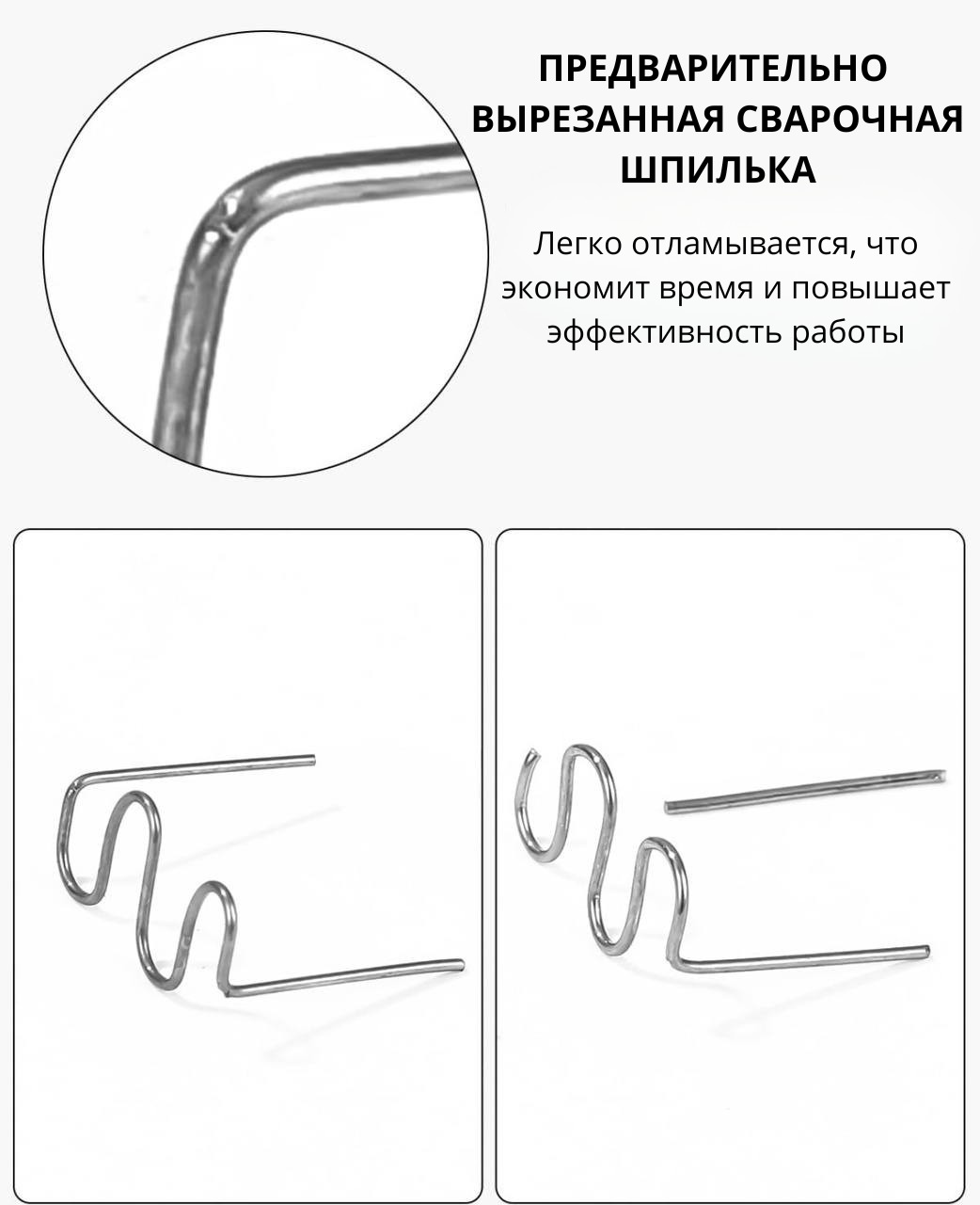 Набор скоб 3000 шт для работ с горячим степлером, а именно – ремонта пластиковых деталей. Применяется для соединения деталей из разных типов пластмассы.