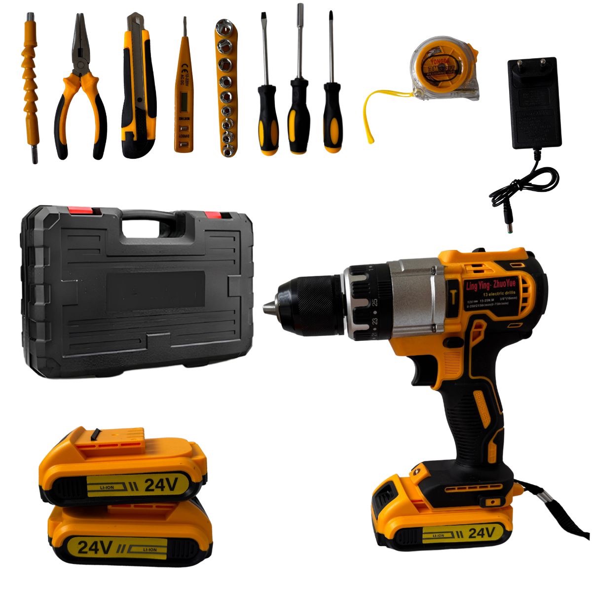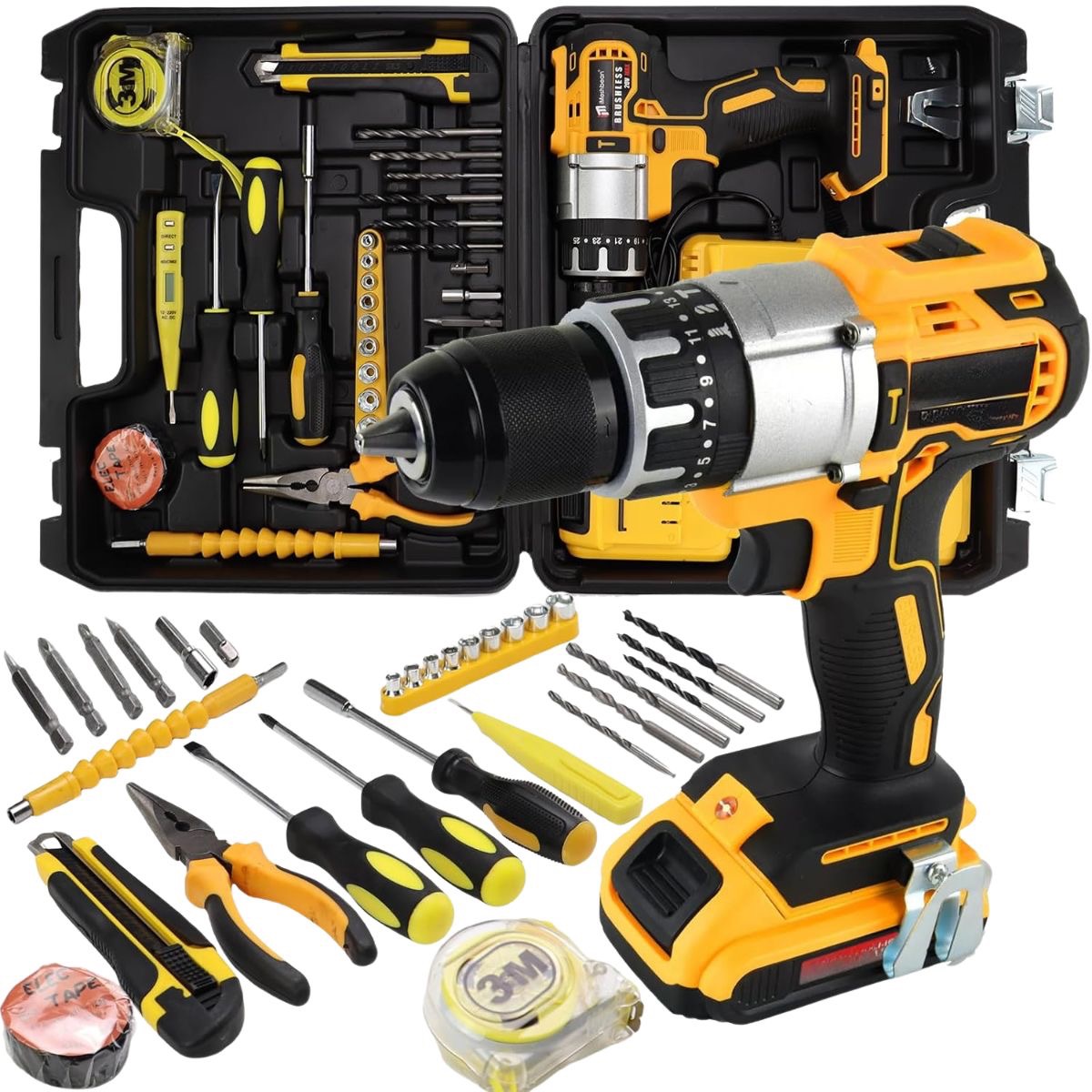 Аккумуляторный бесщеточный Шуруповерт с железным патроном и с набором инструментов