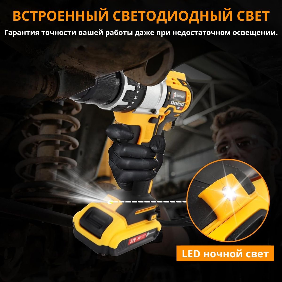- Самый мощный шуруповерт в линейке обеспечивает высокую производительность даже при сложных работах.