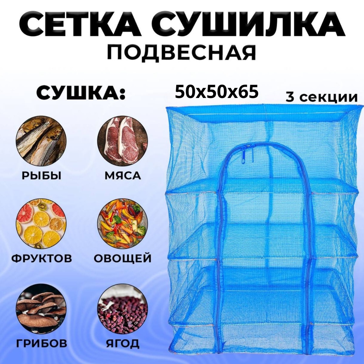 Складная сетка для сушки рыбы, грибов ,овощей и фруктов (50x50x65)