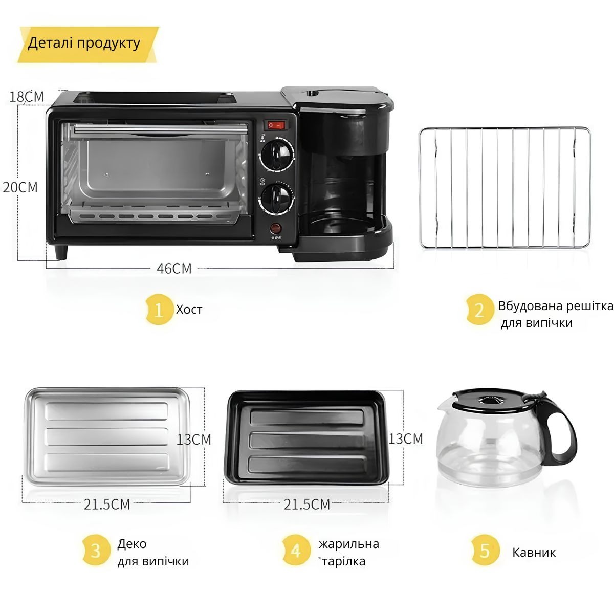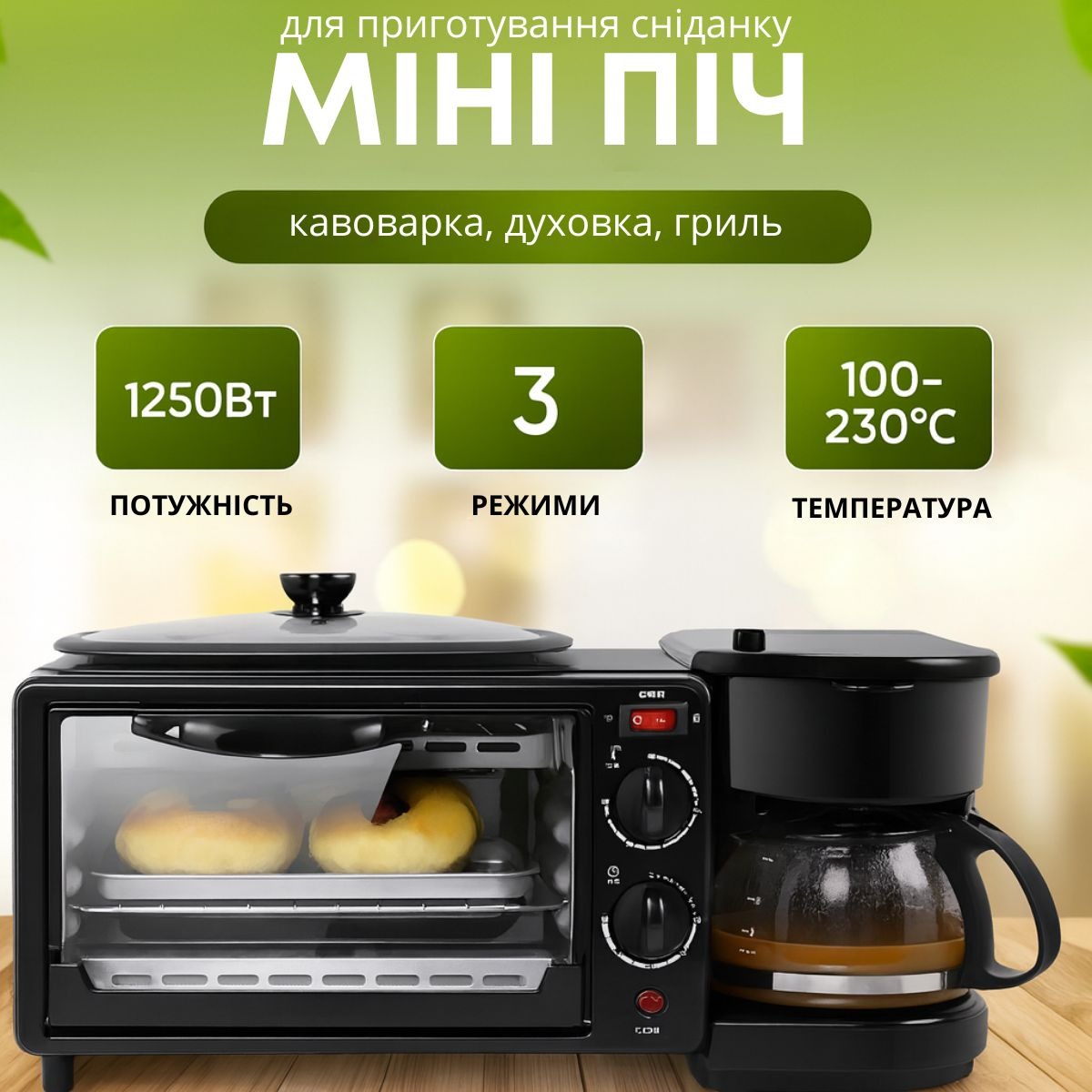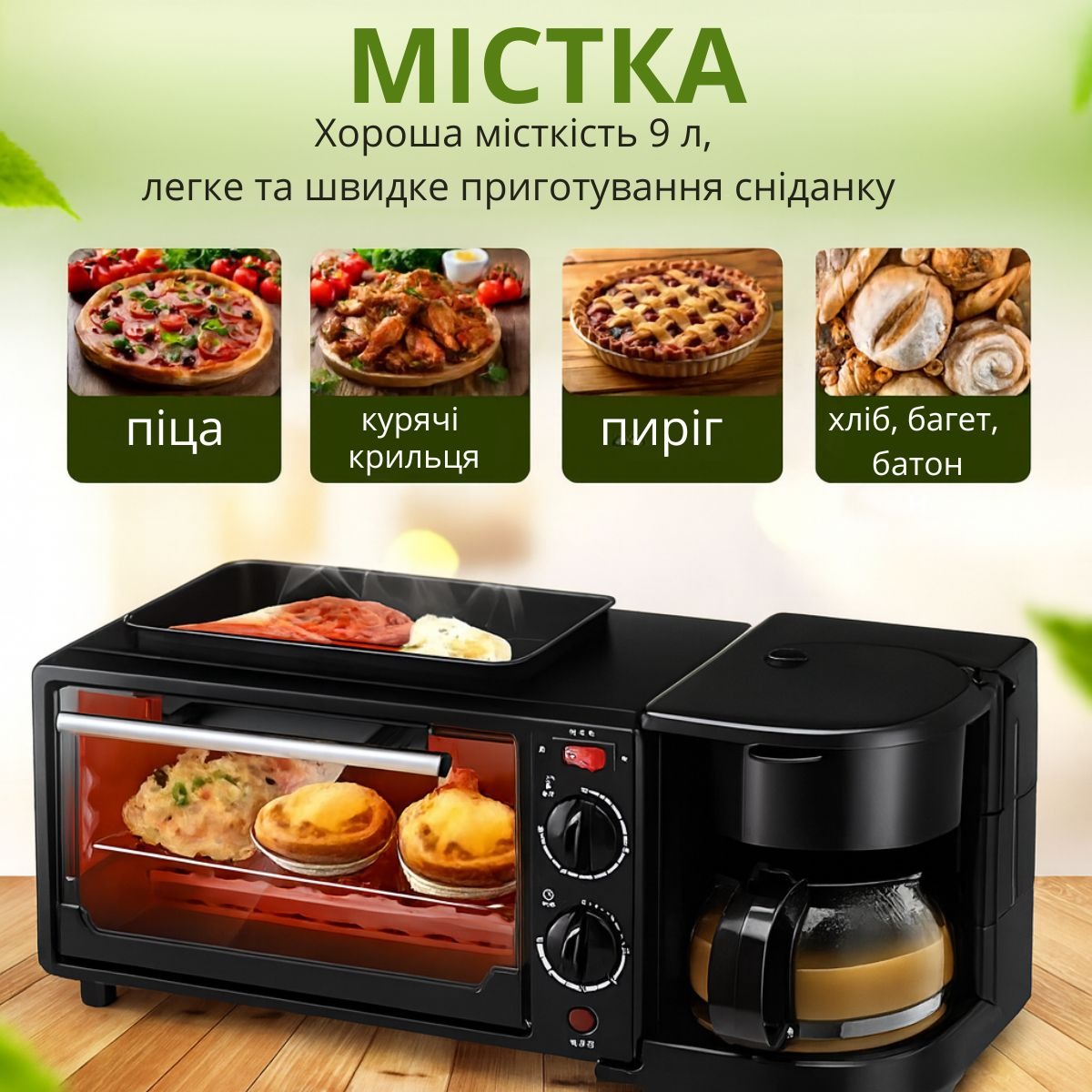 Електрична духовка 3 в 1 з кавоваркою та пательнею