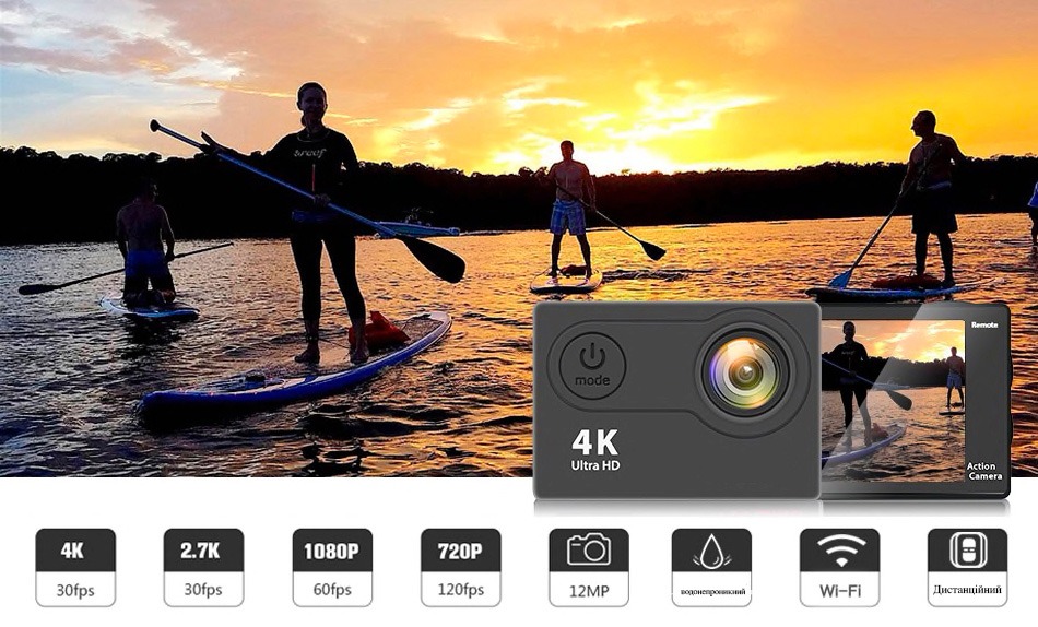 - Роздільна здатність відео: 4K(30fps), 2.7K(30fps), 1080P(1920 x 1080, 30fps), 720P(1280 x 720, 30fps), WVGA (800 x 480)