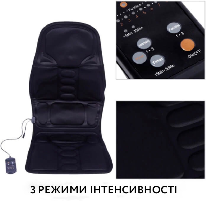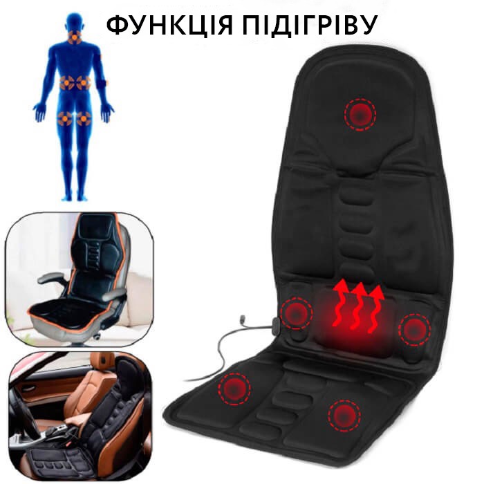 Масажна накидка з функцією підігріву CUSHION - сучасний пристрій для проведення ефективного масажу в побутових умовах або під час поїздки в автомобілі, що дозволяє ефективно знімати м'язове напруження і втому.