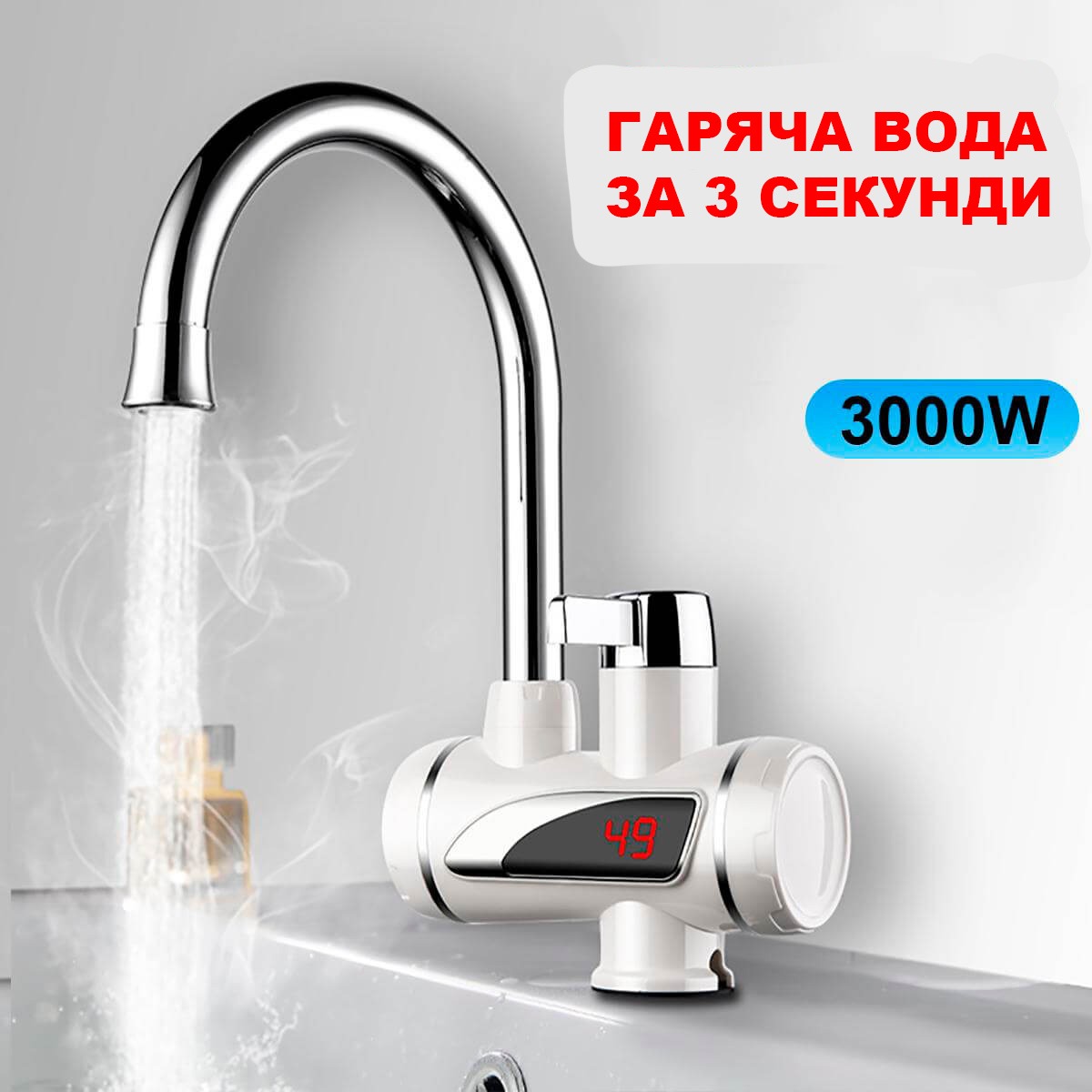 - Нагріває воду до 60 °C протягом 2-3 секунд;