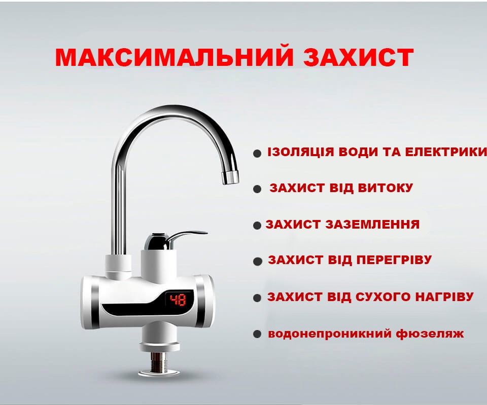 - Проточний водонагрівач на кран LCD оснащений LCD-дисплеєм, який дозволить Вам точно контролювати температуру води.