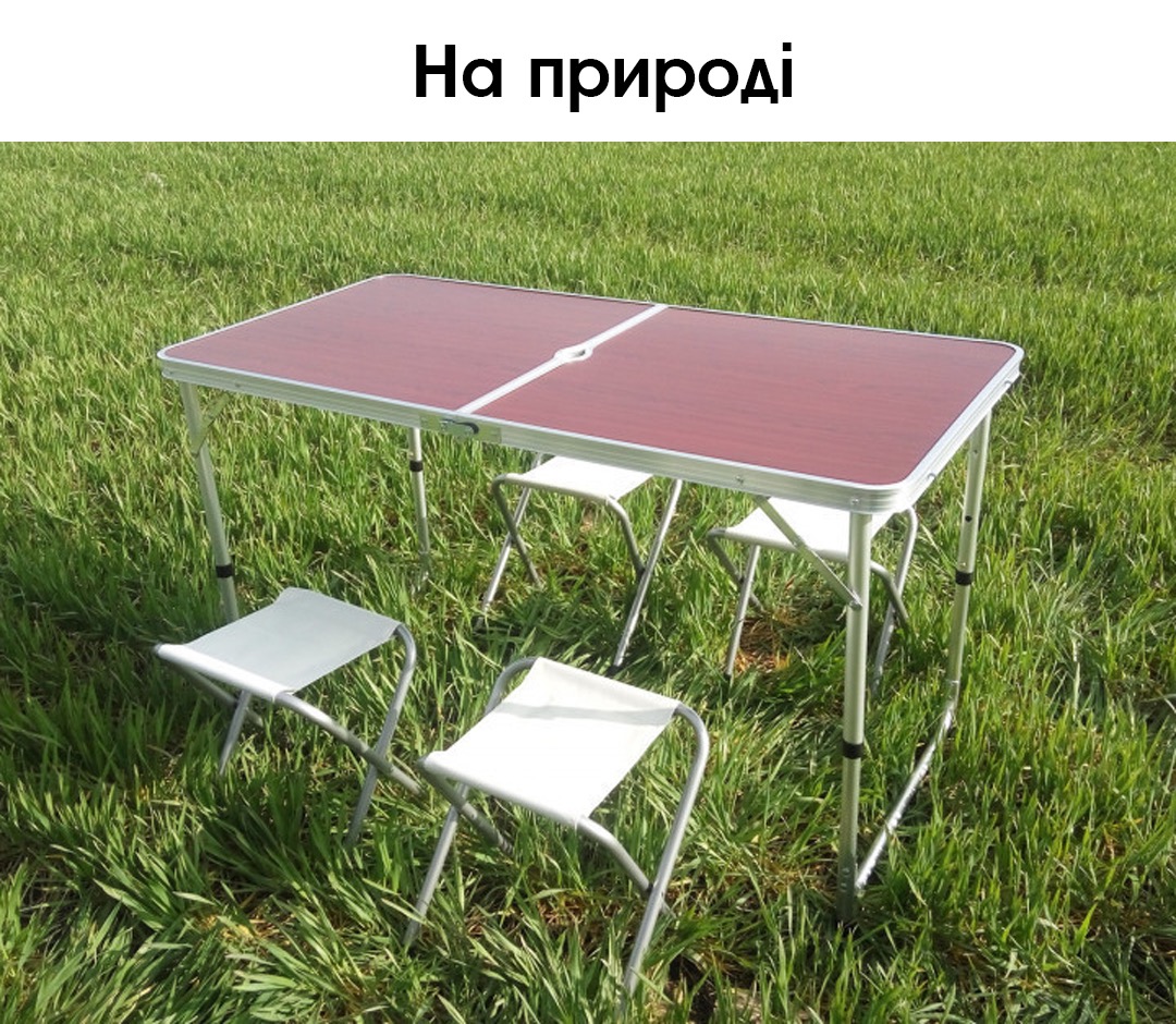 Складаний туристичний стіл + 4 стільця - вибір тих, хто звик відпочивати на природі з максимальним комфортом.