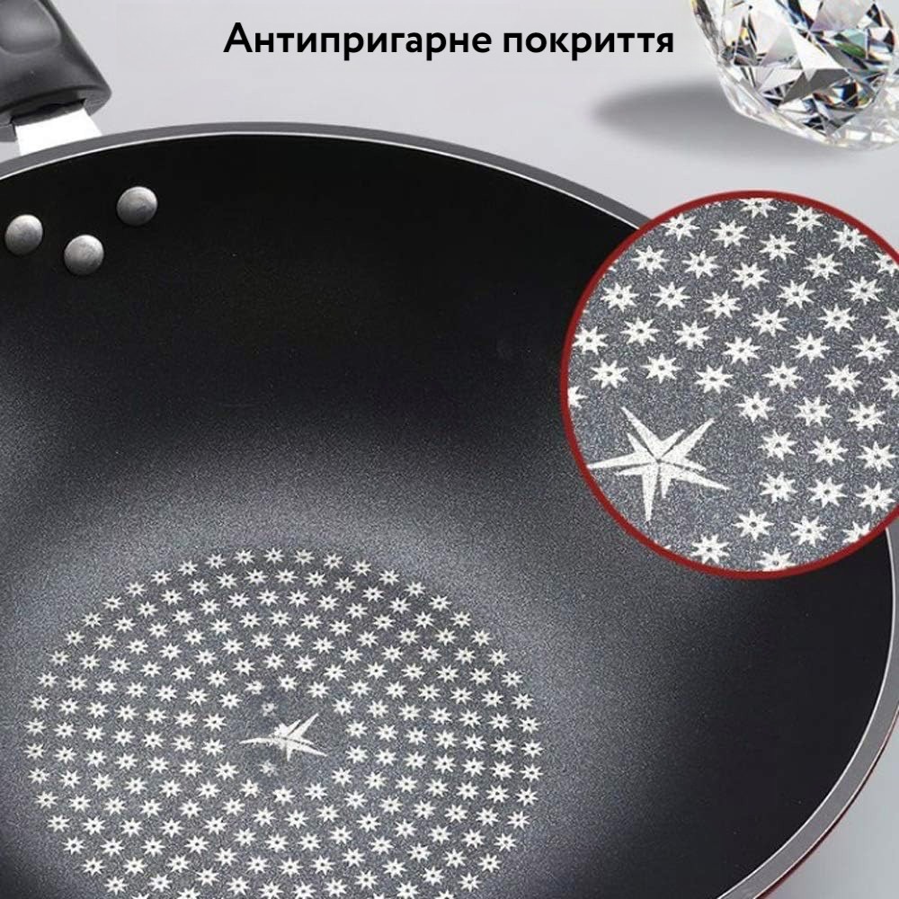 Антипригарна сковорода Wok 32 см з кришкою