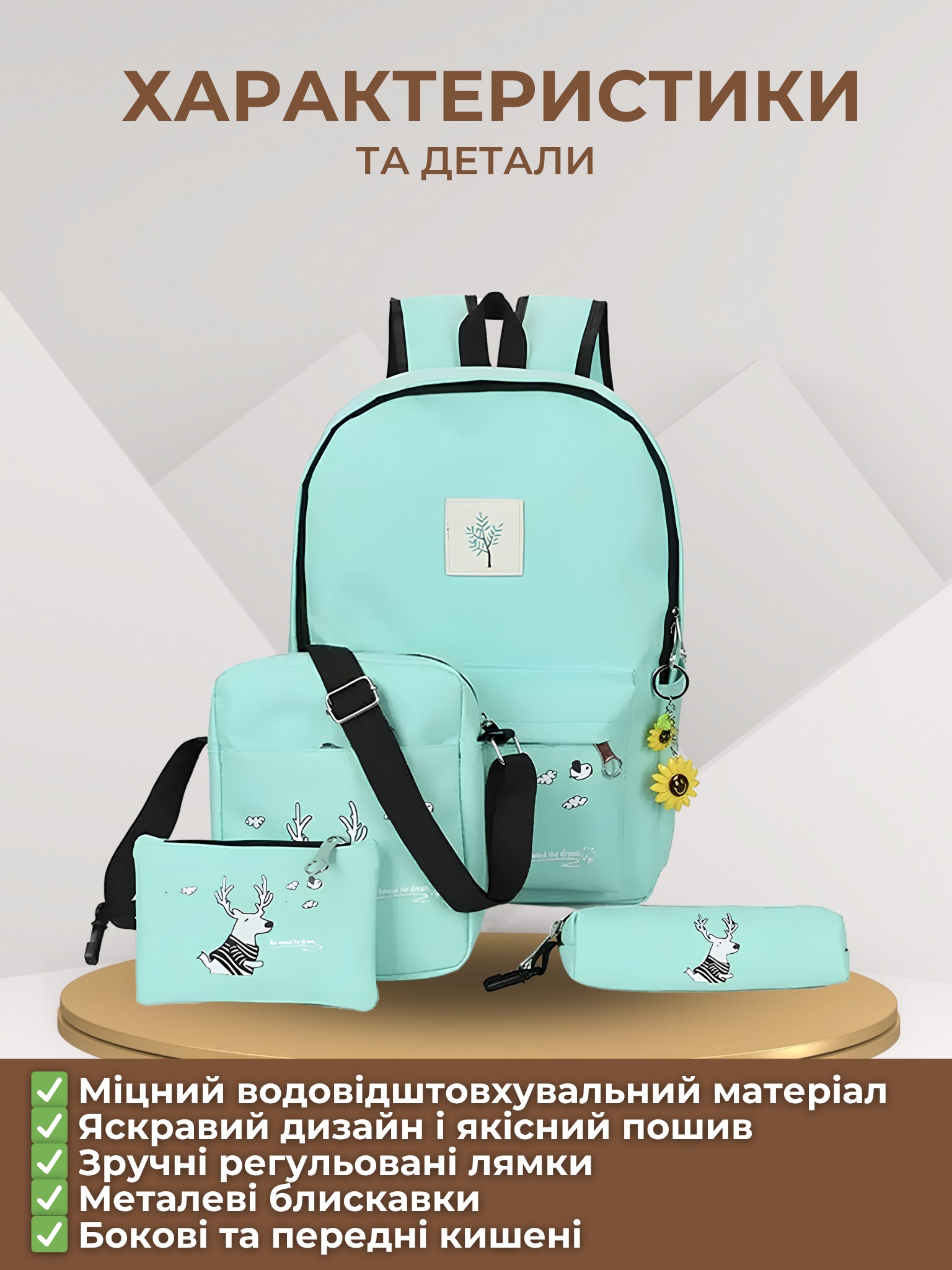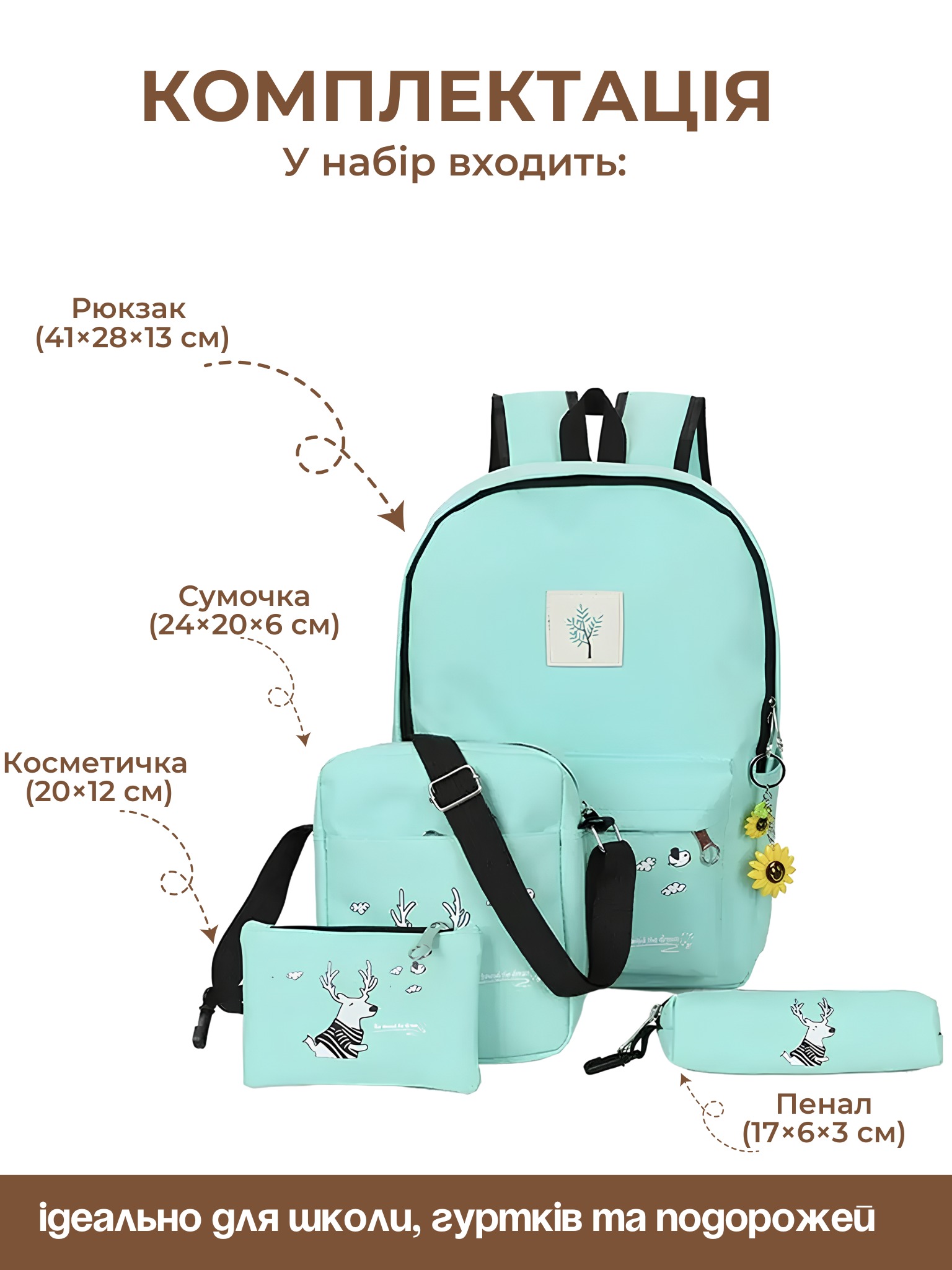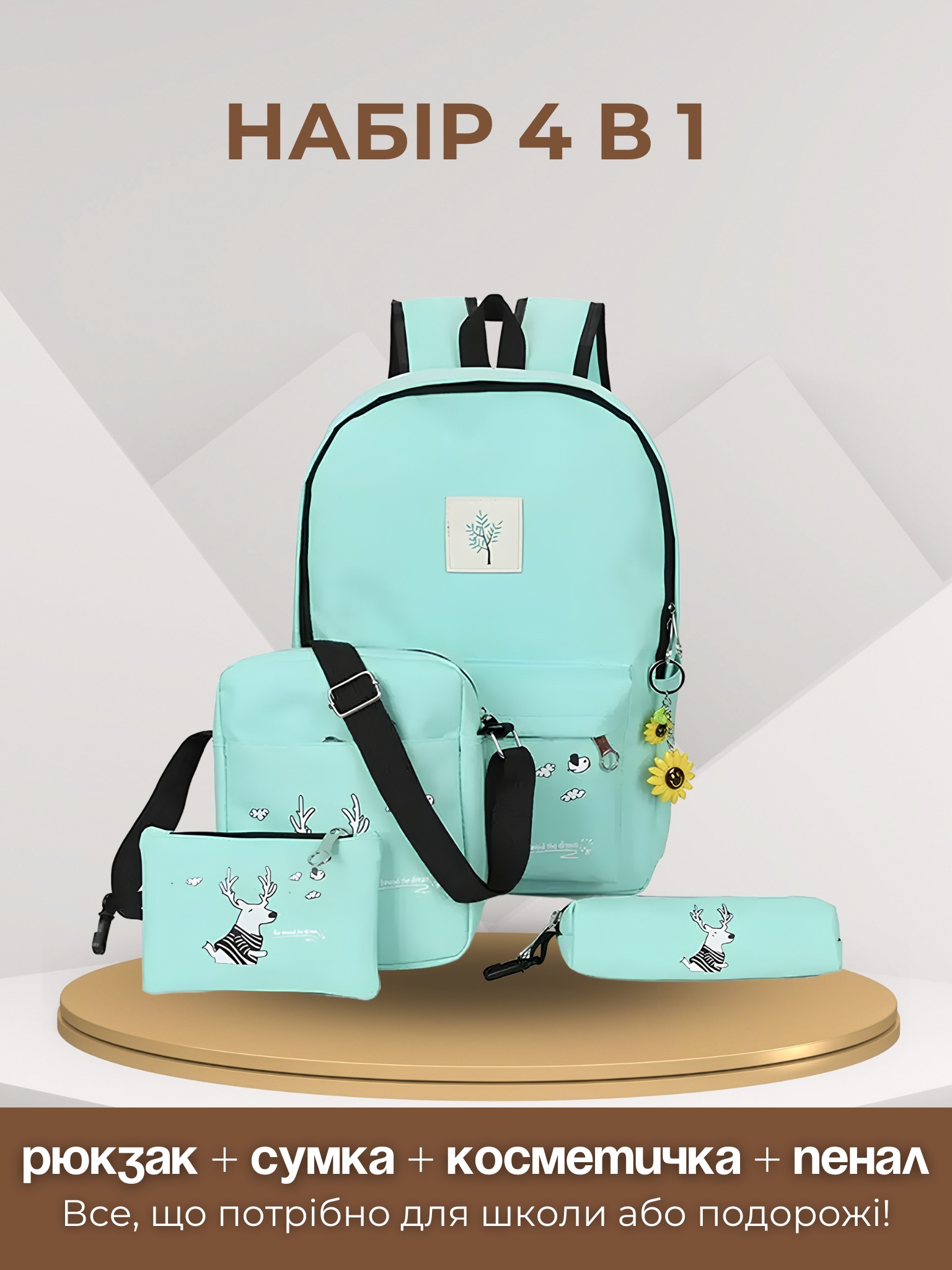 Набір сумок 4 в 1. Рюкзак, сумка, косметичка, пенал бірюзовий