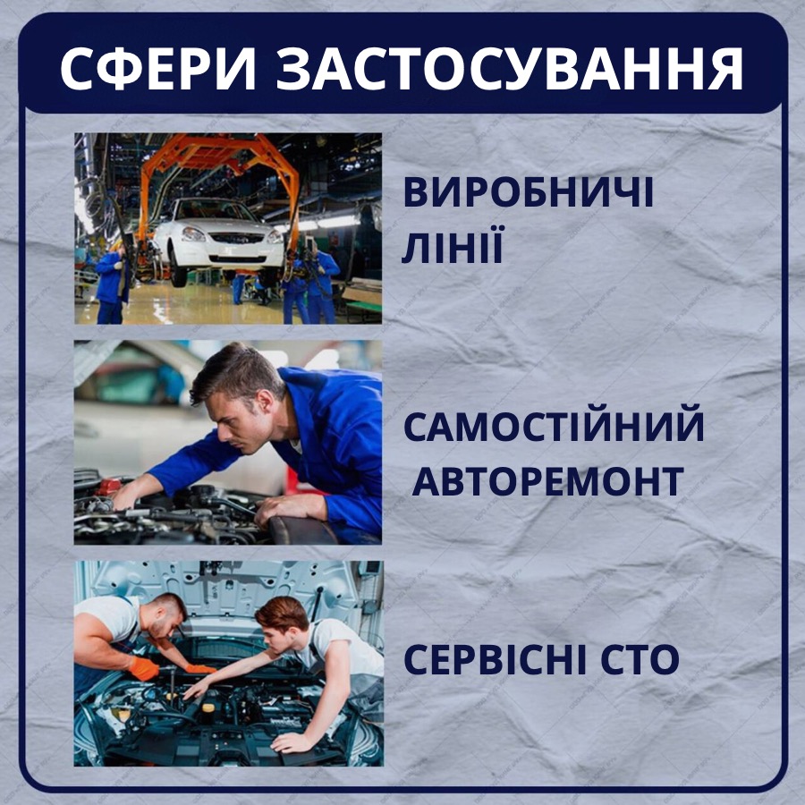- Призначення: для мотоциклів, велосипедів, для ремонту автомобілів;