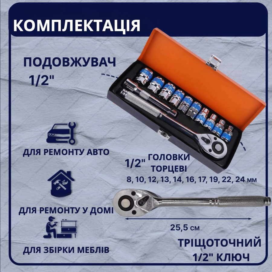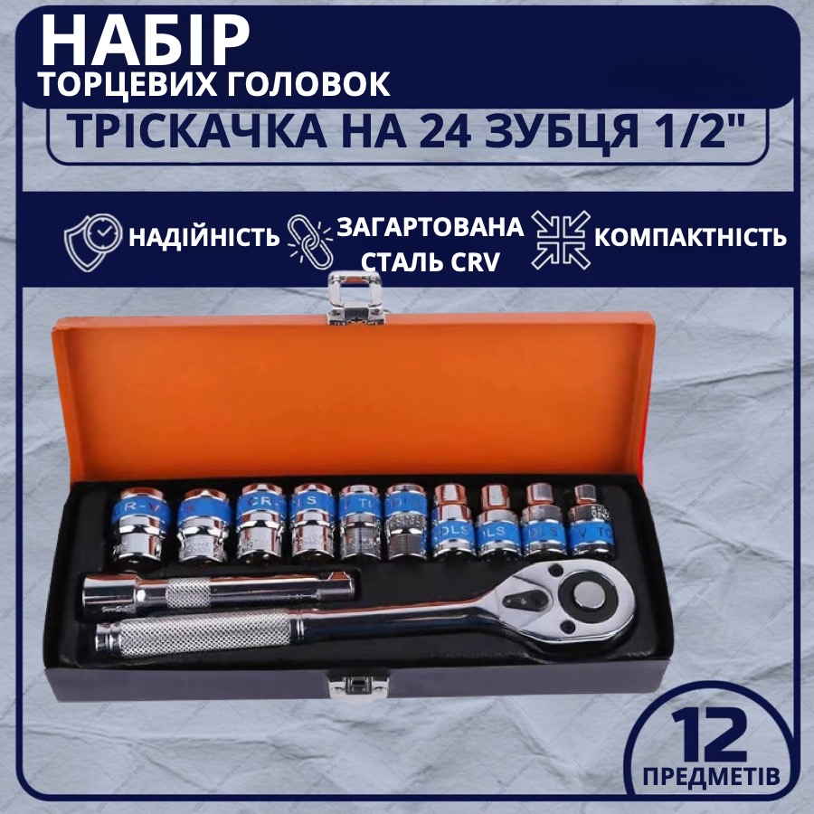 Набір інструментів в кейсі тріскачка з головками для гаража, будинки, авто