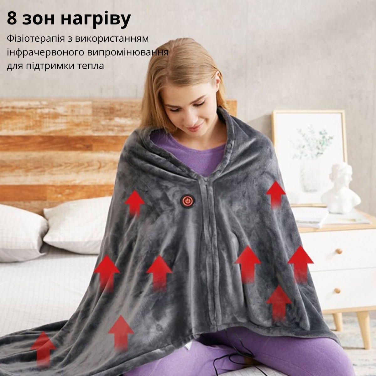 - 8 зон нагріву: Ковдра оснащена вісьмома окремими нагрівальними елементами, які забезпечують рівномірний розподіл тепла по всьому виробу.