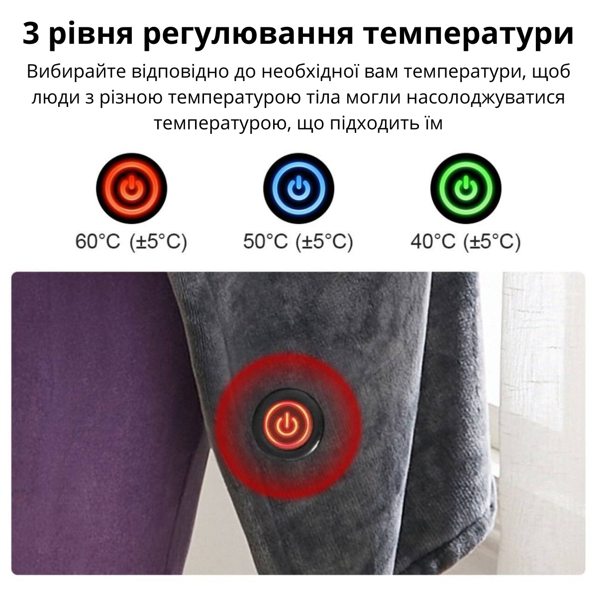 Розмір 160*80 см Колір Сірий Тканина Дхвусторонній кораловий оксамит Грілки 8 шт Передача Три регульовані передачі Діапазон темпереатур 40-60°C ![]()