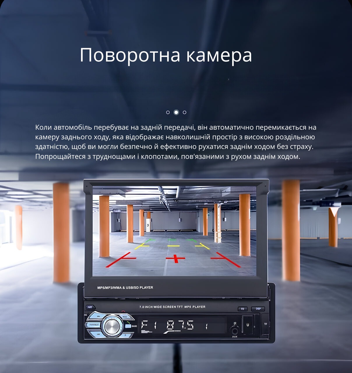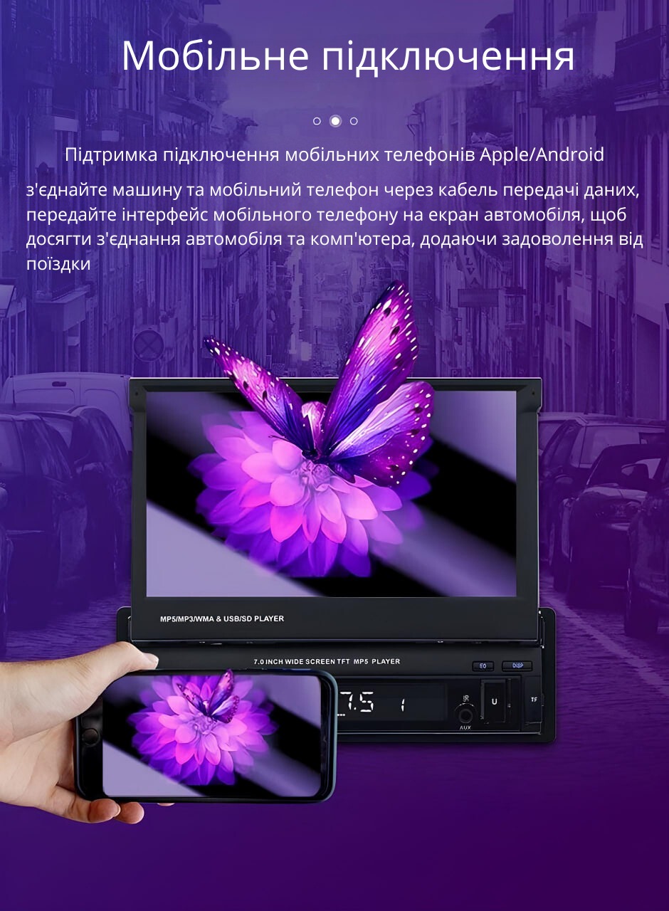 - Дисплей: 7" висувний моторизований сенсорний TFT (Touch Screen)