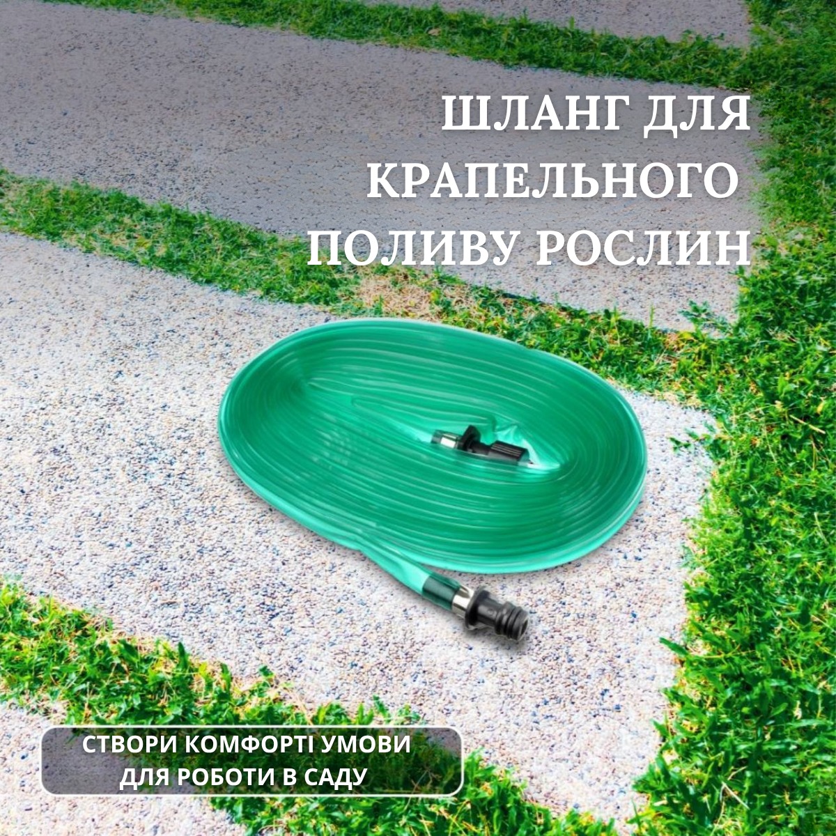 Зелений садовий шланг 15 м з крапельним зрошенням